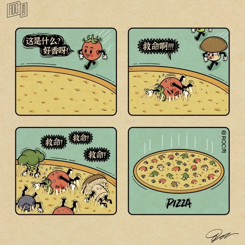今天,我们要参观的是国内一位名为【ROC肉】的原创脑洞漫画家的想象力世界。他的漫画主角,是随处可见的瓜果蔬菜和生活用品,或是以女朋友为原型的人物。那么接下来30张精选漫画,咱们一起来细品吧。