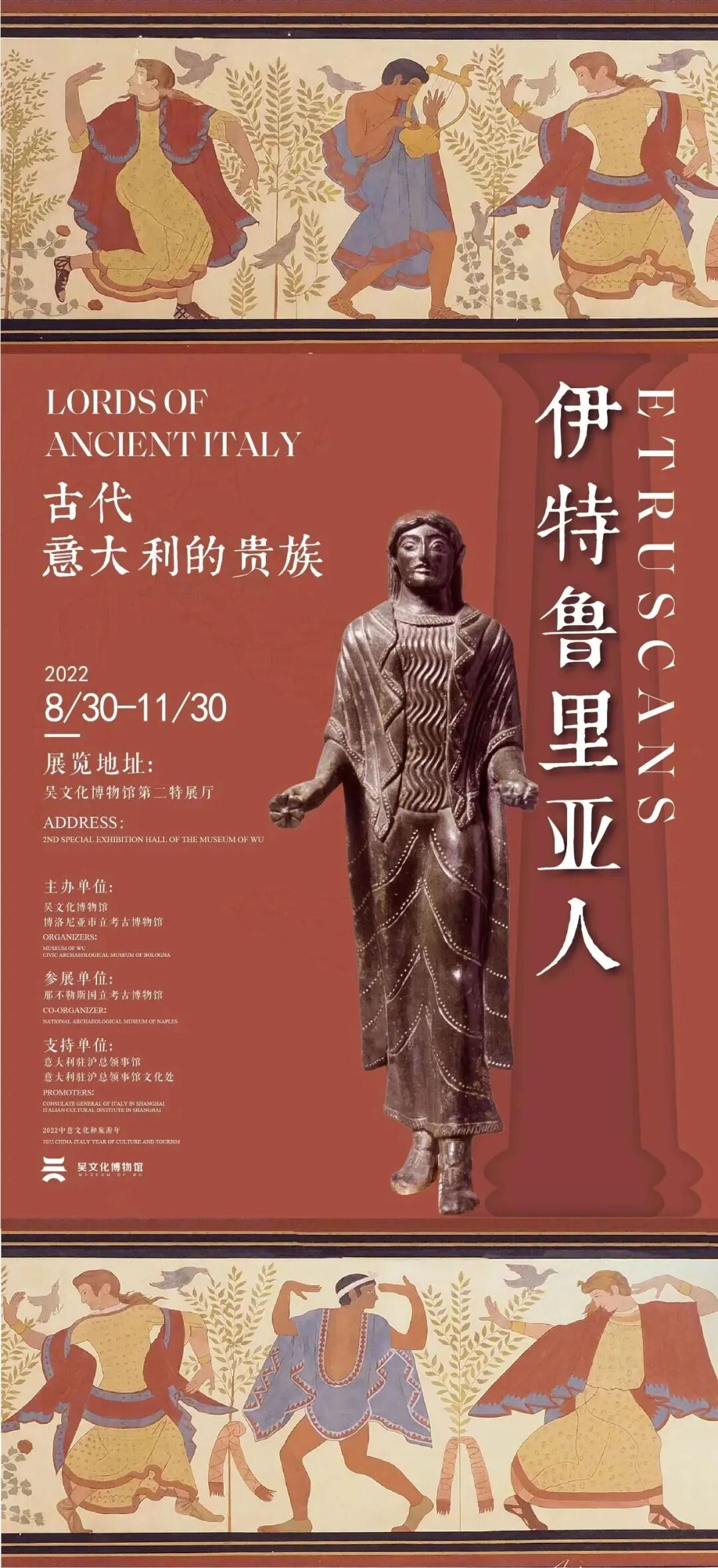伊特鲁里亚文明是意大利半岛上第一个高度发达的文明,年代上与我国西周晚期、春秋战国至秦代大致相当。此时的中国也正处于百家争鸣、文化大一统的时代。通过对同时代欧洲文明的解读呈现,也可以从他者视角深入了解中华文明的优秀传统文化和吴地文化的重要价值。