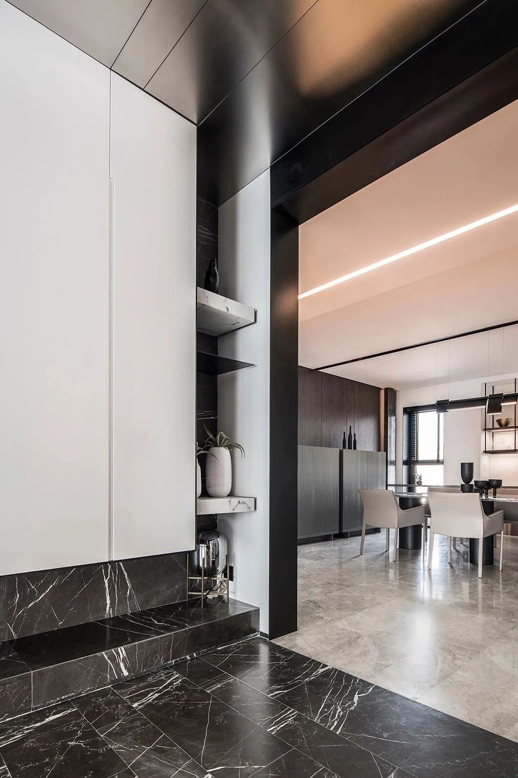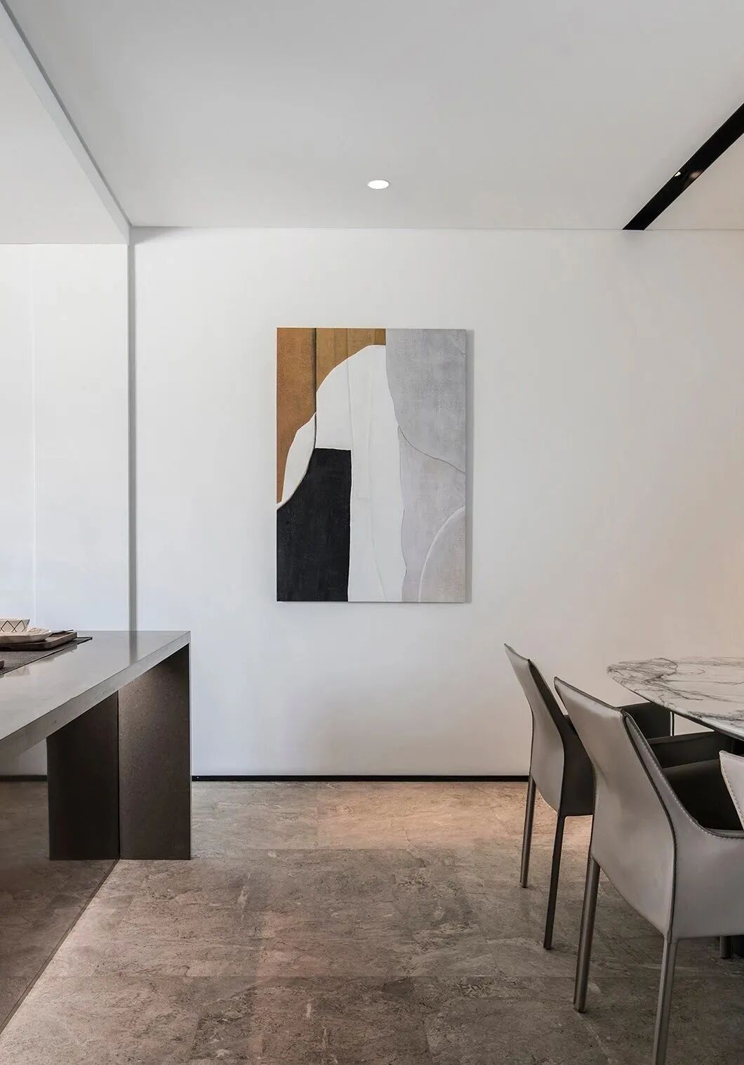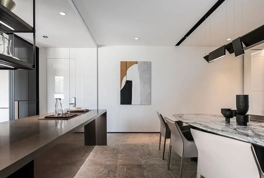 作品集2023-10-11 330㎡开放式大平层,让生活化繁为简! 简单/ 纯粹/ 人文 将现代、简单、纯粹、人文、生活等元素用更大的建筑语汇去执行整个平层空间。 进入玄关即为开放空间,客厅、玄关、走廊、餐厅,最适当的将楼层该有的机能,都缜密的收在这条轴线,合于空间。 客厅大面积的书墙除了造型层面之外,更加赋予空间产生在人文方面的强烈气息。 全室采用简约的线条、纯粹的材料、利落的造型等元素,在现代化的住宅中,除了来自于经济层面的批量化需求,更强调纯粹美学。 生活空间以四大主轴贯穿,分别为客厅、玄关、餐厅、卧房空间。作为机能上的发展,辅以走廊横向动线串联,整体力求动线流畅及视觉开阔。 地坪石材切割重组,型塑如同泼墨画般的视觉效果。金属手刷铜、铁件、木皮与石材、以现代手法与语汇、以及细腻的细部介入空间,赋予风格鲜明的时代感。 这些设计不外乎是为了拉近各个空间甚至使用者的距离,让生活更贴近生活。我们所在意的不只是舒适的空间,而是一个良好生活的开始。 开放式的厨房空间减去了厚重的墙面隔屏也减轻了视觉的重量感,大面积的开窗设计,更将大平层的采光优势、迷人景色完全引入室内。 舍弃传统耗费人力的雕龙画凤,采取利落的线条及强调材料本质,造型不加以多余的着墨,意味从传统建筑厚重的束缚中解放开来的新生活。 最单纯的点、线、面元素,除了舍弃了传统的浮夸造型,更进一步强调材料的本质。 让生活中触手可及的每一个表面,都可以让材料展现最单纯的原型。这些最单纯的木、石、金属等,都赋予空间全新的面貌。 空间,是人与环境的整合,是与环境紧密结合的有机体,沉淀的经验与记忆,为家增添温度。 回家,真好! 本文来自微信公众号“亚太室内设计”(ID:ytsnsj)。大作社经授权转载,该文观点仅代表作者本人,大作社平台仅提供信息存储空间服务。 TAGS: 室内设计生活空间 相关文章Kleoniki Andr…这是大王Day.281获奖作品《2020最佳图书…精选头像|搞怪来袭!安东尼奥·布埃诺 作品配色清新梦幻的场景插画,充…美国Jennifer Mc…【小鹏设计】设计小改/动力…【首发】地点空间丨打破空间…谢商家不坑之恩!只骗有钱人…
