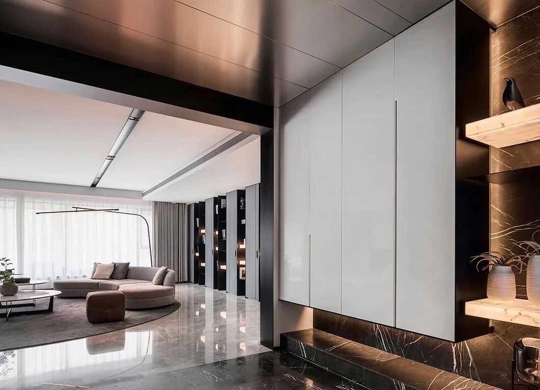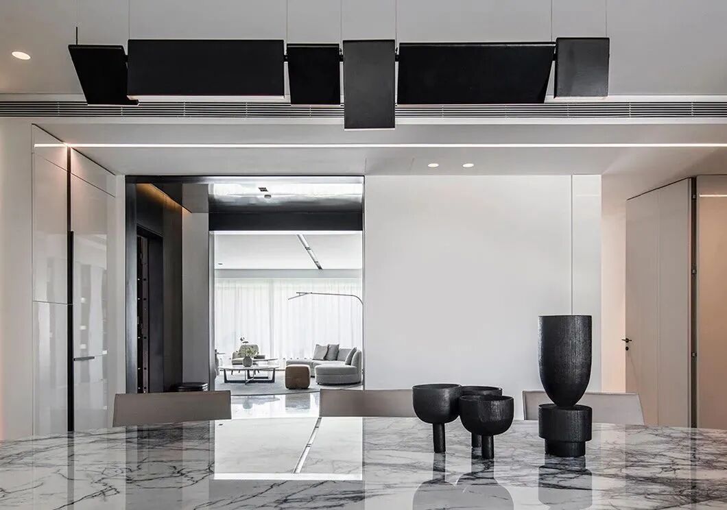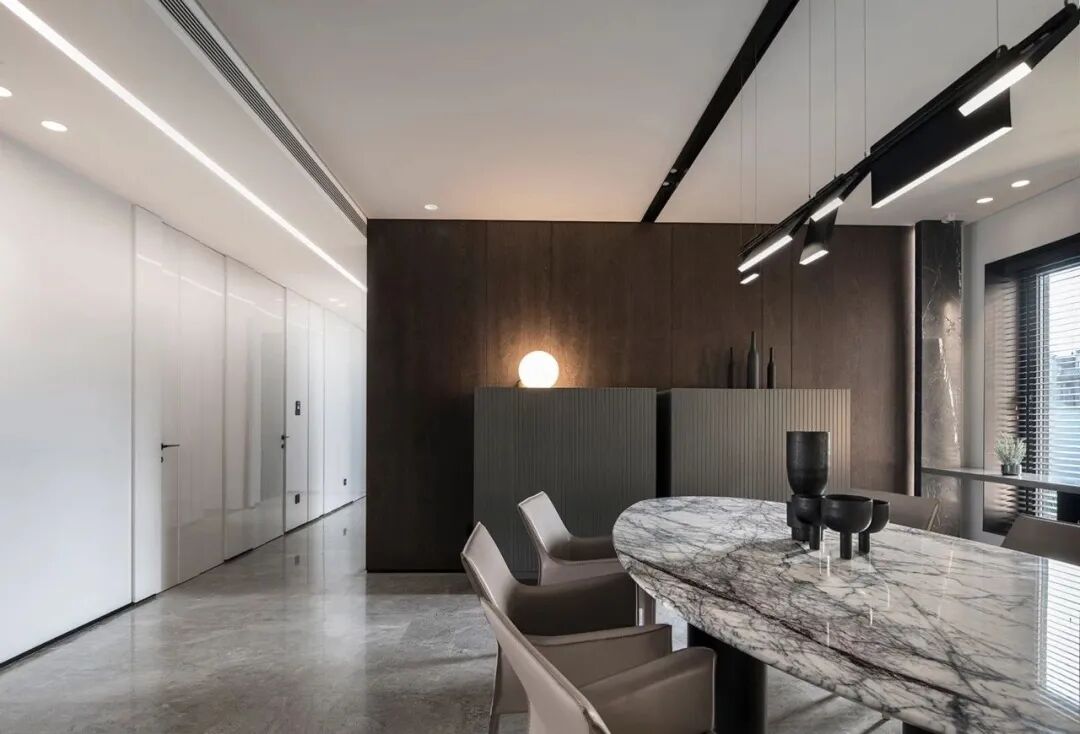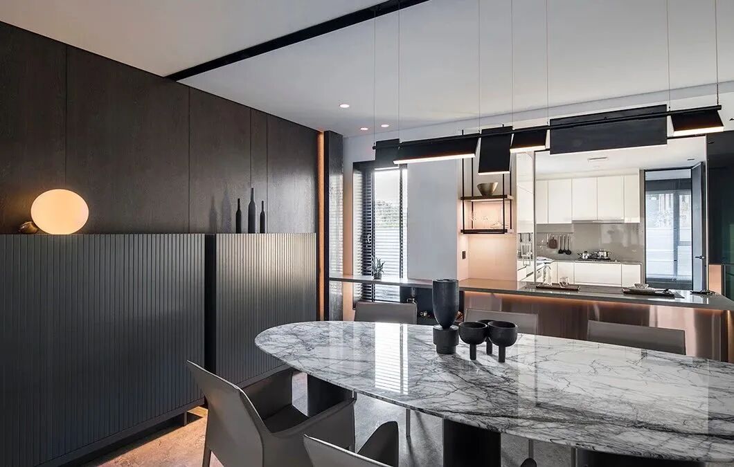 作品集2023-10-11 330㎡开放式大平层,让生活化繁为简! 简单/ 纯粹/ 人文 将现代、简单、纯粹、人文、生活等元素用更大的建筑语汇去执行整个平层空间。 进入玄关即为开放空间,客厅、玄关、走廊、餐厅,最适当的将楼层该有的机能,都缜密的收在这条轴线,合于空间。 客厅大面积的书墙除了造型层面之外,更加赋予空间产生在人文方面的强烈气息。 全室采用简约的线条、纯粹的材料、利落的造型等元素,在现代化的住宅中,除了来自于经济层面的批量化需求,更强调纯粹美学。 生活空间以四大主轴贯穿,分别为客厅、玄关、餐厅、卧房空间。作为机能上的发展,辅以走廊横向动线串联,整体力求动线流畅及视觉开阔。 地坪石材切割重组,型塑如同泼墨画般的视觉效果。金属手刷铜、铁件、木皮与石材、以现代手法与语汇、以及细腻的细部介入空间,赋予风格鲜明的时代感。 这些设计不外乎是为了拉近各个空间甚至使用者的距离,让生活更贴近生活。我们所在意的不只是舒适的空间,而是一个良好生活的开始。 开放式的厨房空间减去了厚重的墙面隔屏也减轻了视觉的重量感,大面积的开窗设计,更将大平层的采光优势、迷人景色完全引入室内。 舍弃传统耗费人力的雕龙画凤,采取利落的线条及强调材料本质,造型不加以多余的着墨,意味从传统建筑厚重的束缚中解放开来的新生活。 最单纯的点、线、面元素,除了舍弃了传统的浮夸造型,更进一步强调材料的本质。 让生活中触手可及的每一个表面,都可以让材料展现最单纯的原型。这些最单纯的木、石、金属等,都赋予空间全新的面貌。 空间,是人与环境的整合,是与环境紧密结合的有机体,沉淀的经验与记忆,为家增添温度。 回家,真好! 本文来自微信公众号“亚太室内设计”(ID:ytsnsj)。大作社经授权转载,该文观点仅代表作者本人,大作社平台仅提供信息存储空间服务。 TAGS: 室内设计生活空间 相关文章Kleoniki Andr…这是大王Day.281获奖作品《2020最佳图书…精选头像|搞怪来袭!安东尼奥·布埃诺 作品配色清新梦幻的场景插画,充…美国Jennifer Mc…【小鹏设计】设计小改/动力…【首发】地点空间丨打破空间…谢商家不坑之恩!只骗有钱人…