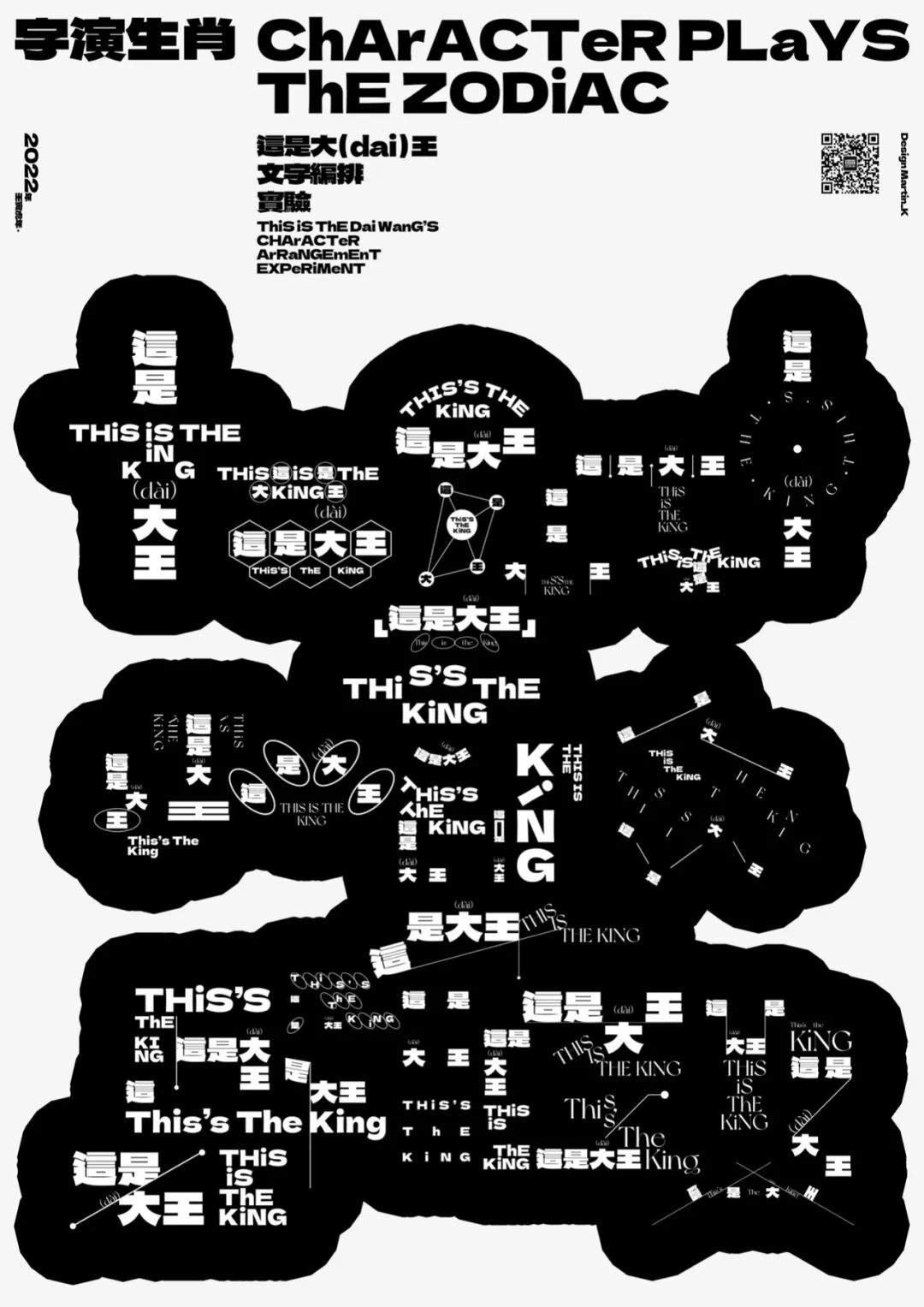 以“王”字作为形象的载体,使30组文字编排依次排列组合,营造一种高高在上的视觉表现,与主题内容不谋而合。