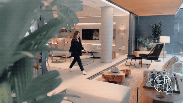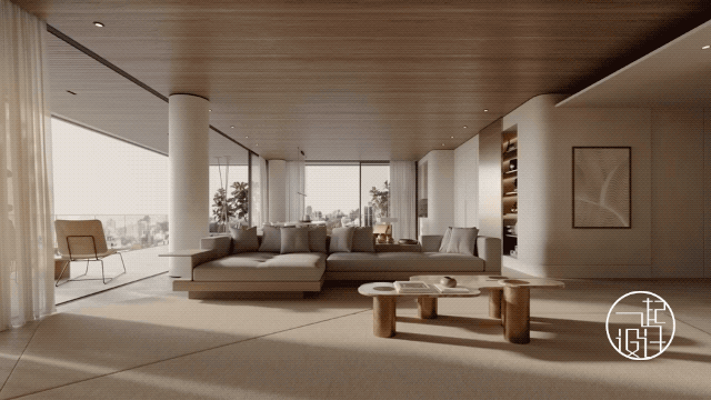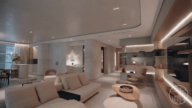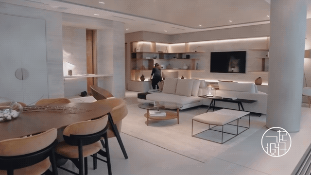 340㎡的公寓大平层享有客餐厨三合一的全开放式空间,外侧配设L型连通大阳台,给人一种宽敞且大气的空间感受。