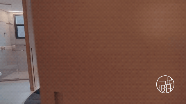 开放式衣帽间与卧室相连,可通过茶色玻璃隔断相互隔开,其中一面墙作为储物空间收纳主人众多各式各样的衣帽鞋包。