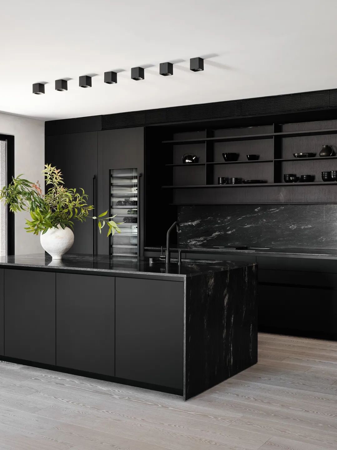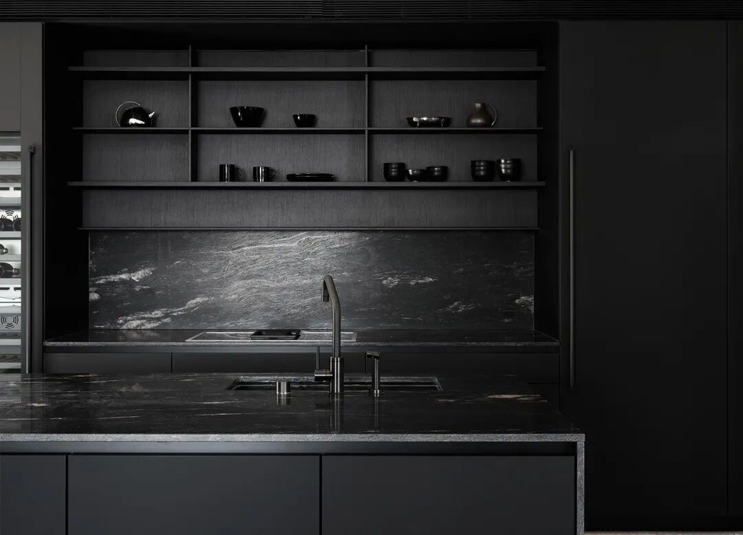 中央岛屿的两侧都包裹着石头,前后都有对齐的细木工 。确保了整体形式保持突出和整体,同时舒适性也恰到好处展现出来了。