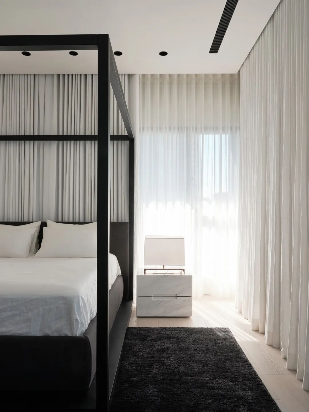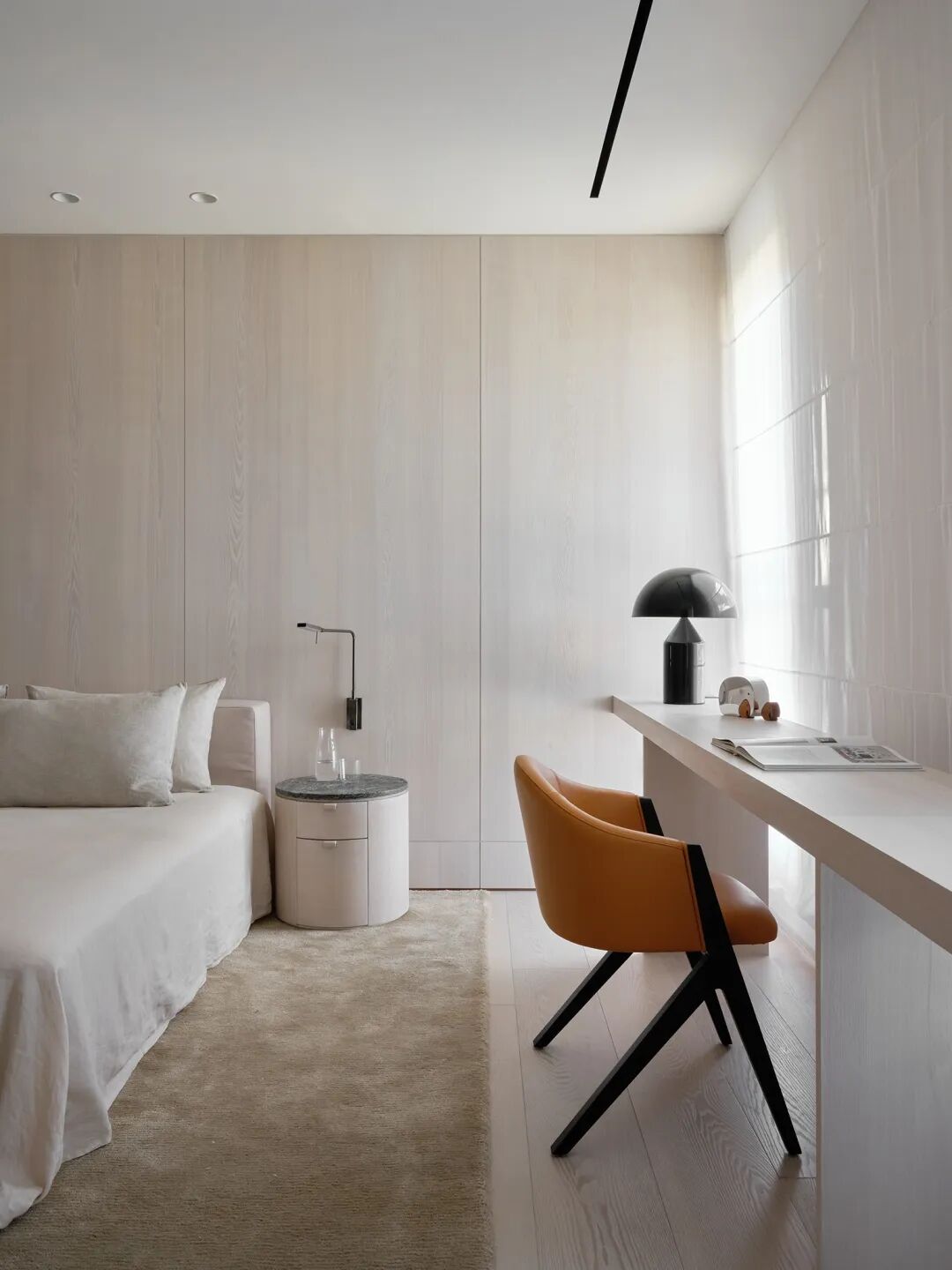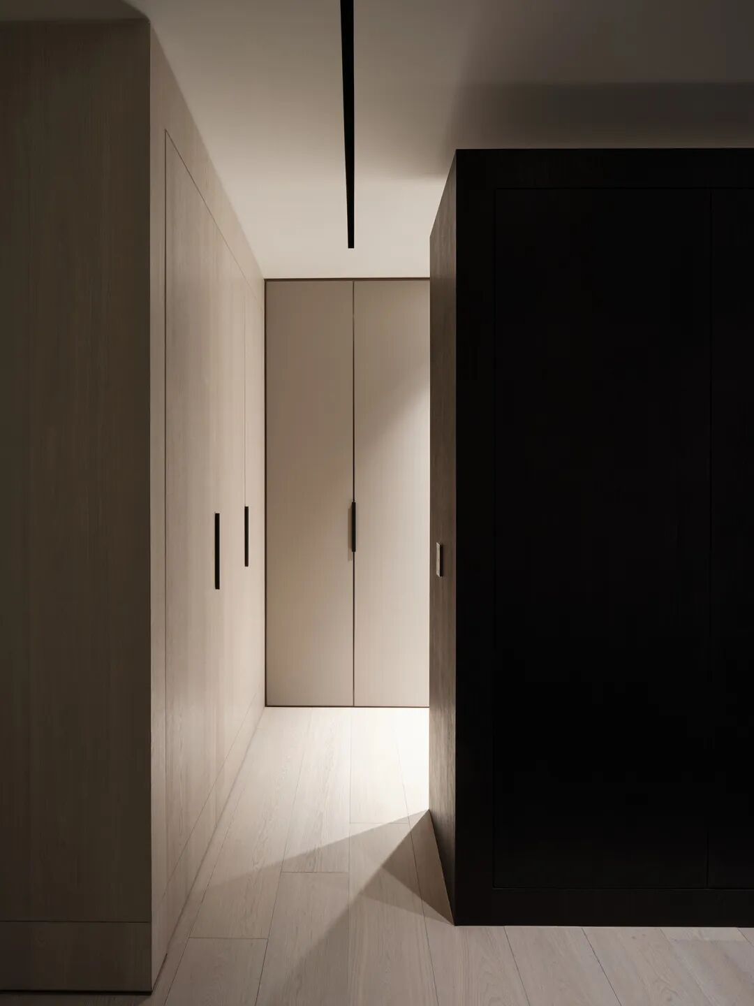 卧室入口,干净的线条贯穿整个垂直和水平,从内部扩展对空间的感知。