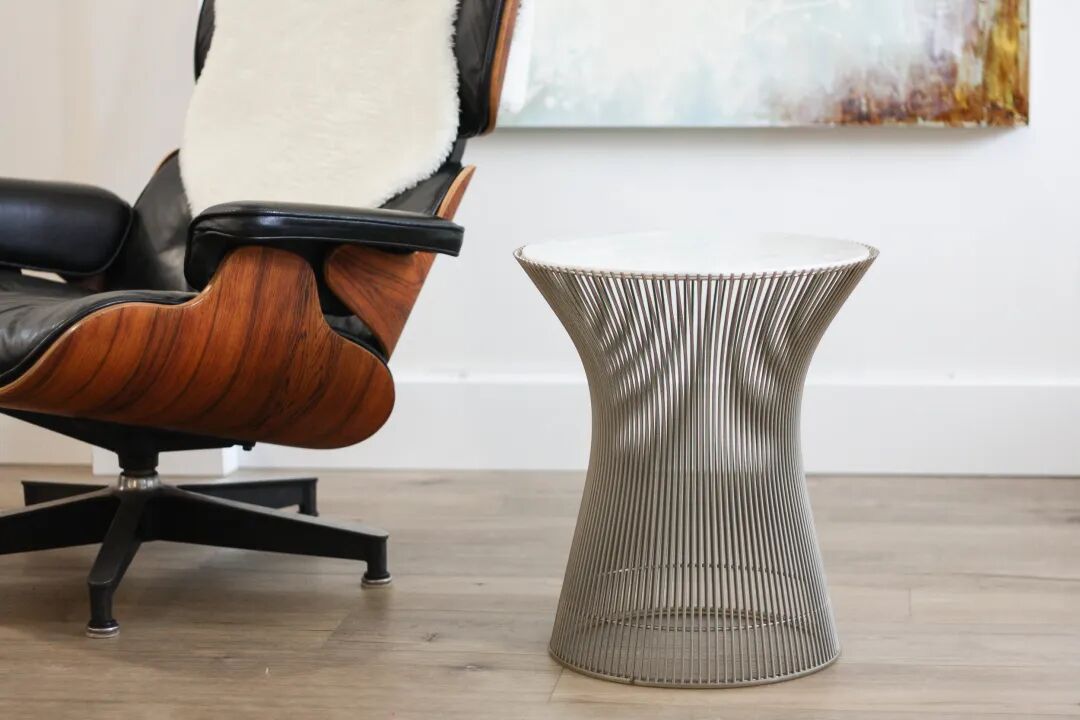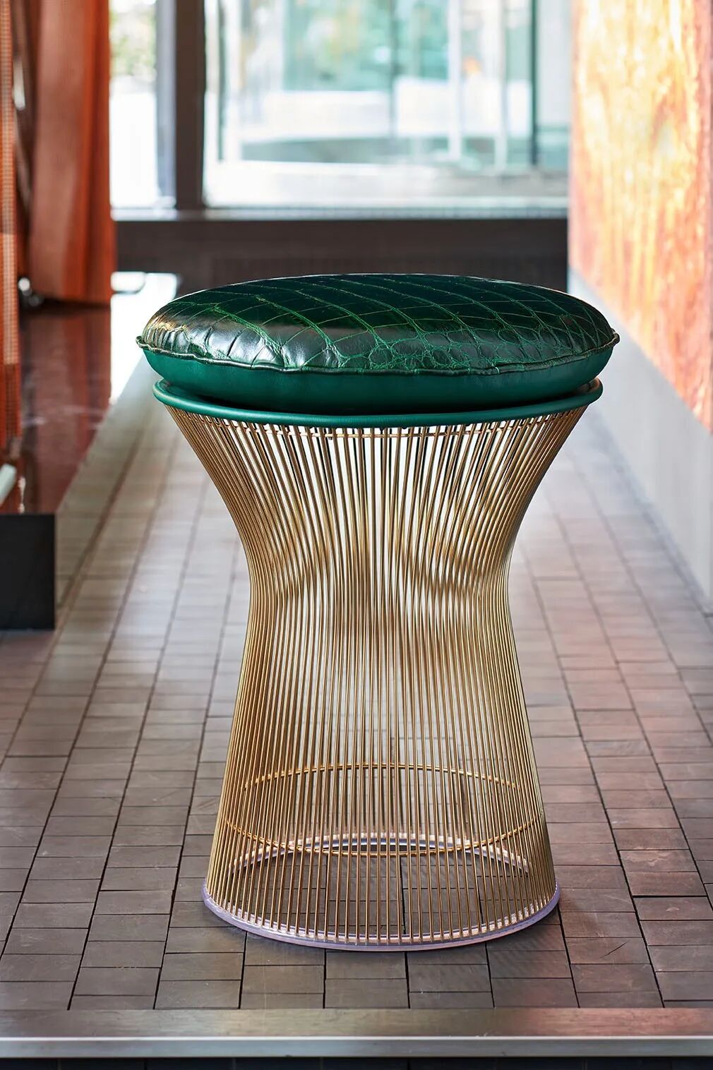 1966 年,Knoll Platner 凳子捕捉到了“装饰性、温和、优雅”的形状,这些形状开始渗透到现代词汇中。Warren Platner 凭借多根棒状结构产生的光学效果实现了“发光的小麦”这一效果。