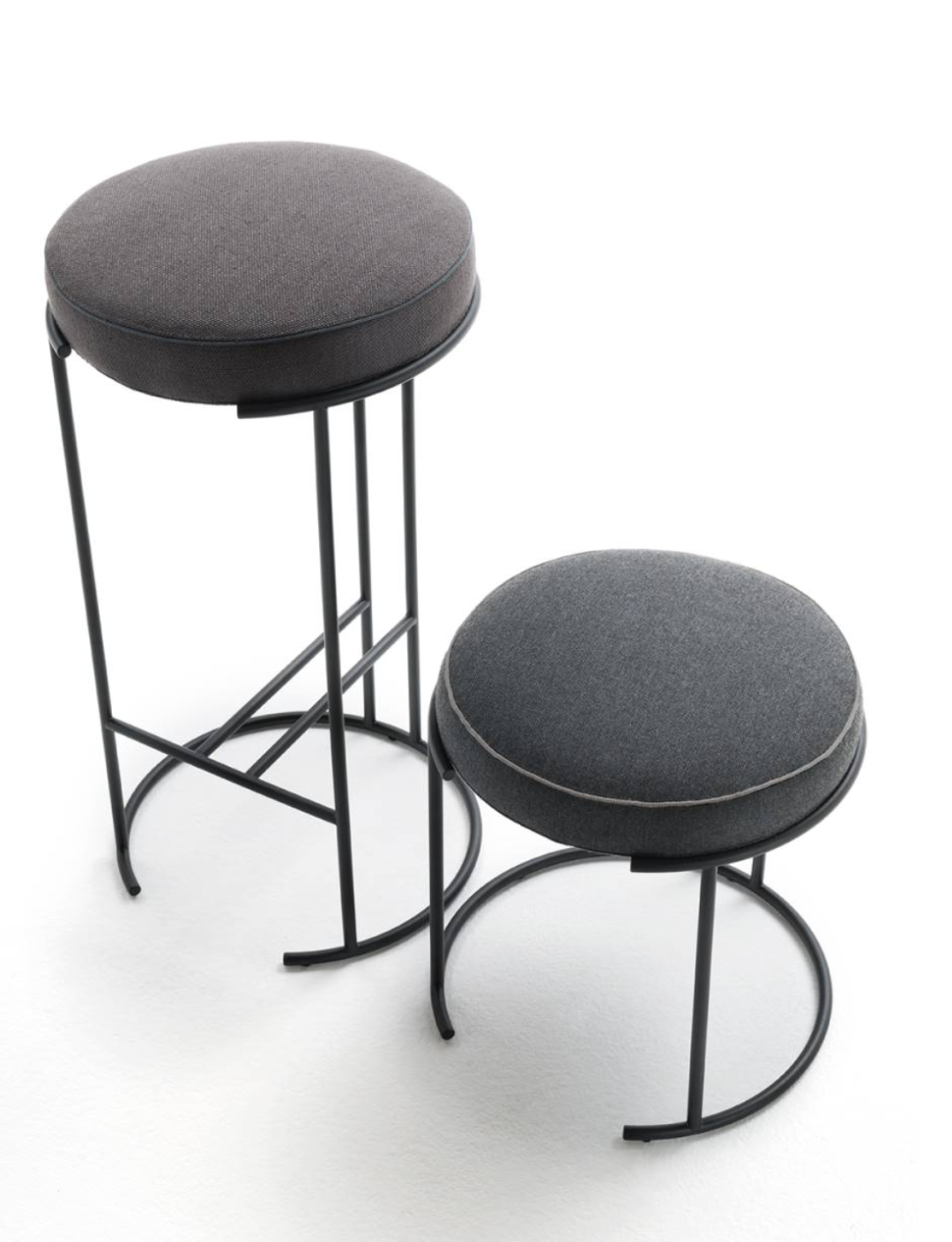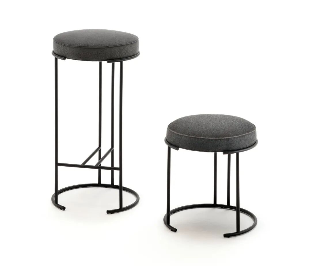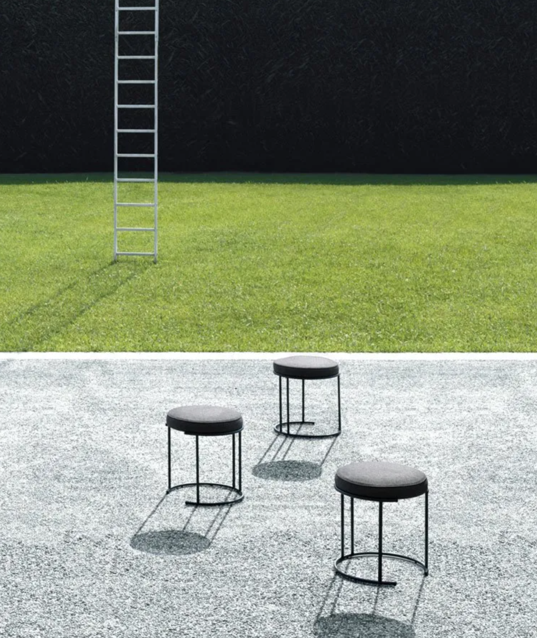 Nina 凳子由 David Lopez Quincoces 为 Living Divani 设计,是一款极简且同时具有装饰性的凳子。支撑框架采用直径 12 毫米的钢棒截面,有两种高度可供室内和室外使用。