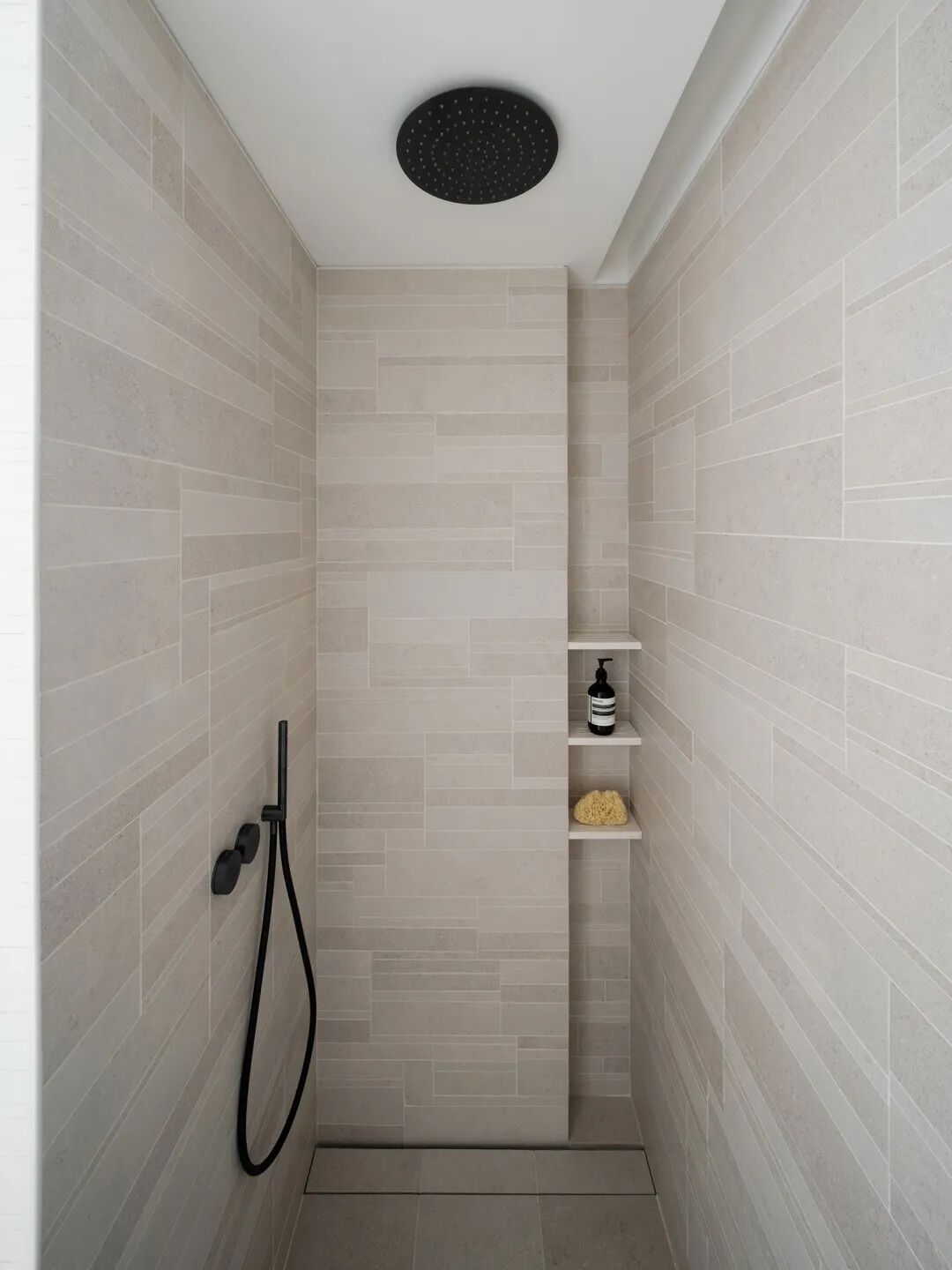浴室采用了干湿分离,大面积的白搭配黑色的几何线条,呼应了整个家的色彩基调。移门淋浴间简洁又大方。