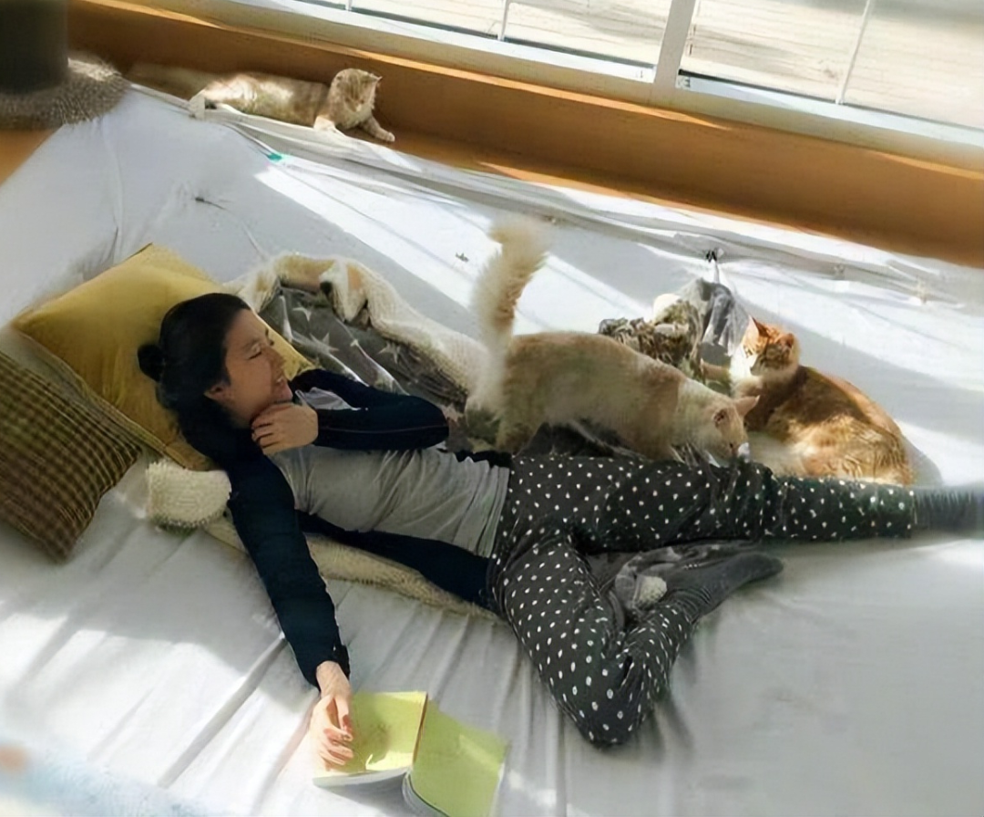 刘亦菲非常喜欢猫,总喜欢逗它玩它,抱它喂它,劳而不怨,所以在她的豪宅小院,也收留了很多流浪猫,;
