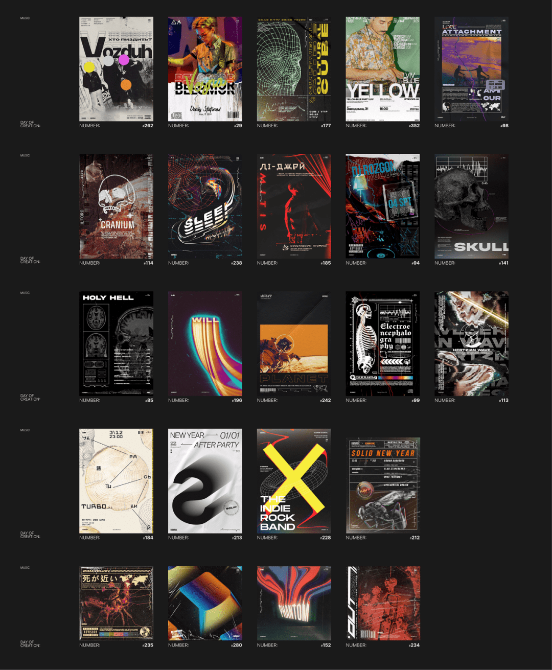 又一位365天每天设计海报的大佬——Roma Horsky,挑战自——每天一张海报,每个月都有针对性的主题和设计风格。365天海报设计,不同版式不同主体,真是妙蛙种子吃着妙脆角,妙进了米奇妙妙屋,妙到家了!