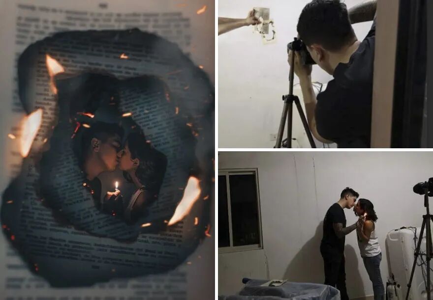 摄影师为了拍照必须用头贴着地面,抓拍浪漫瞬间。