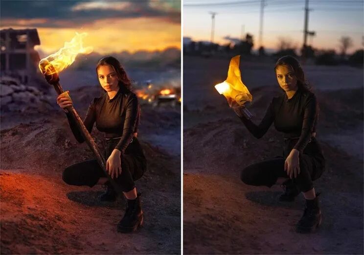 在社交媒体上总有人发布一些大片似的照片,让人追捧羡慕。但是你所看到的,真的如此完美吗?其实这是别人让你看到的。下面这组对比图,向我们展示了那些隐藏在网红大片背后的真相。女子手持火把,野性十足,但现实中她拿的是一盏照明灯。