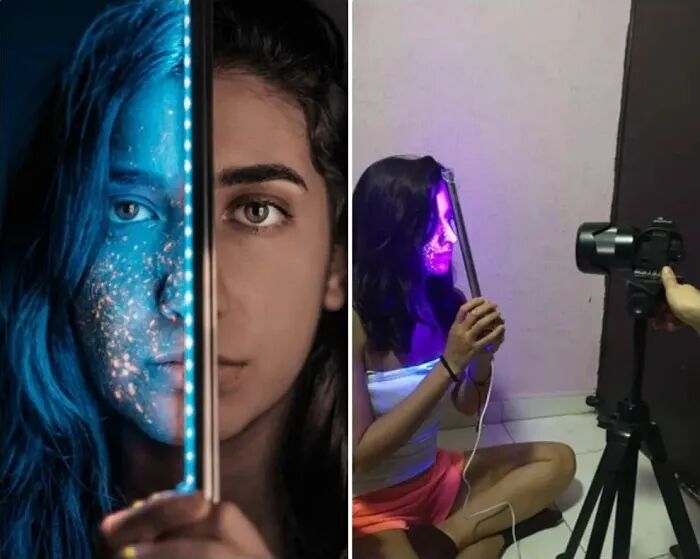 蓝光效果是用荧光棒制造的,在家中就能拍出这张魔幻照片。