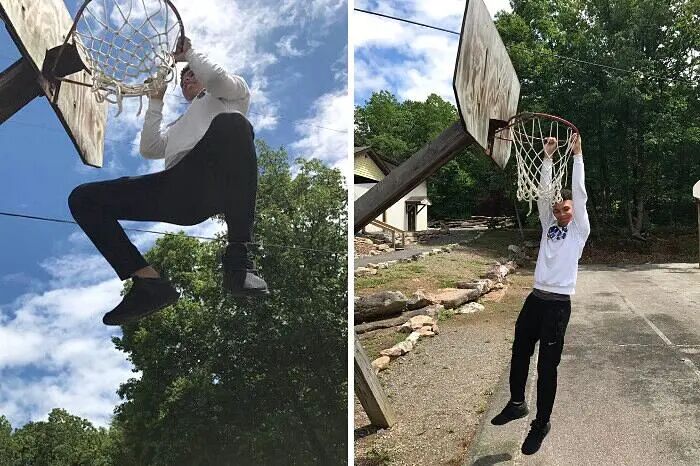 你以为他跳了5米高,其实这个篮筐离地面也就是2米。
