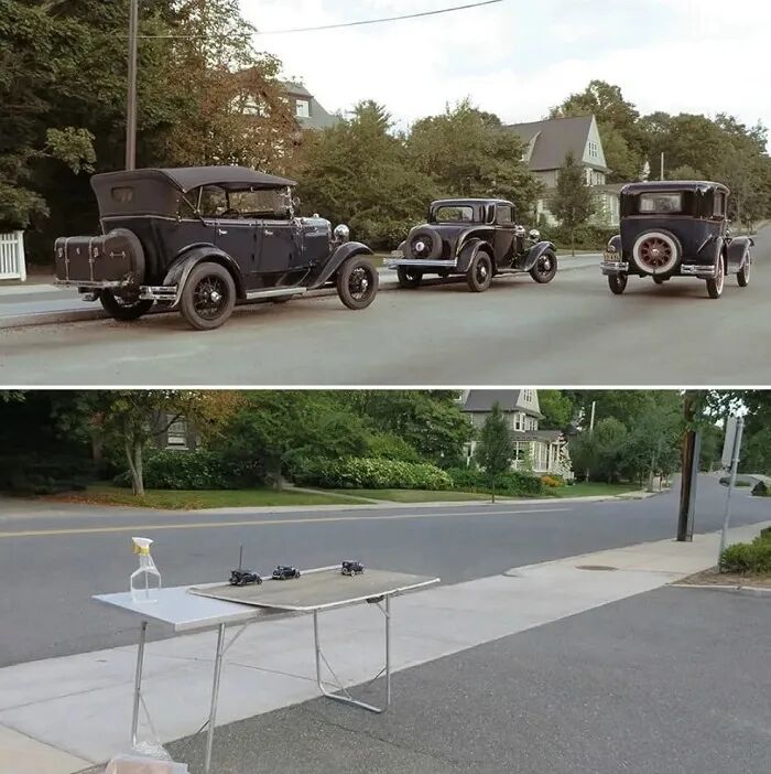 路上的汽车是微型模型,通过透视完美地融合进周围的景物。