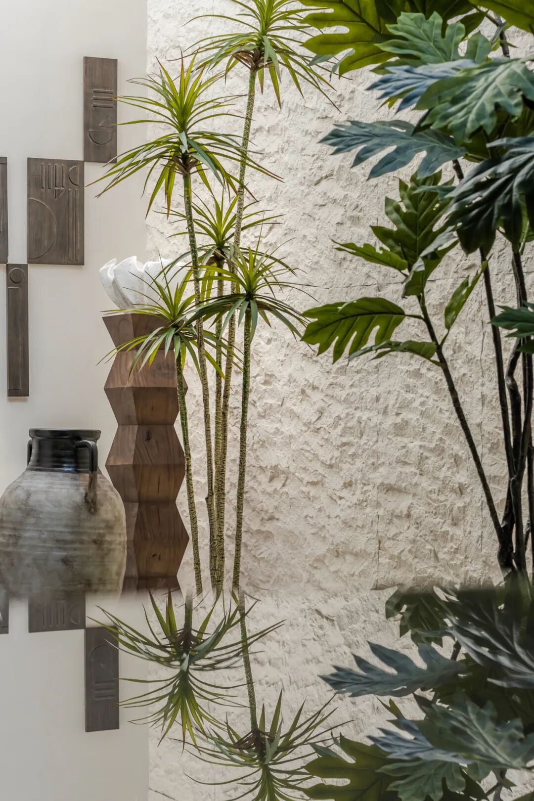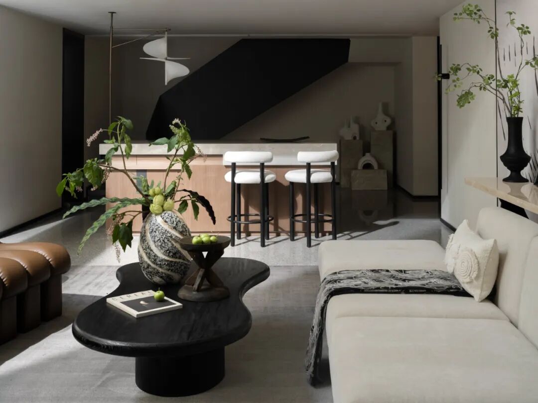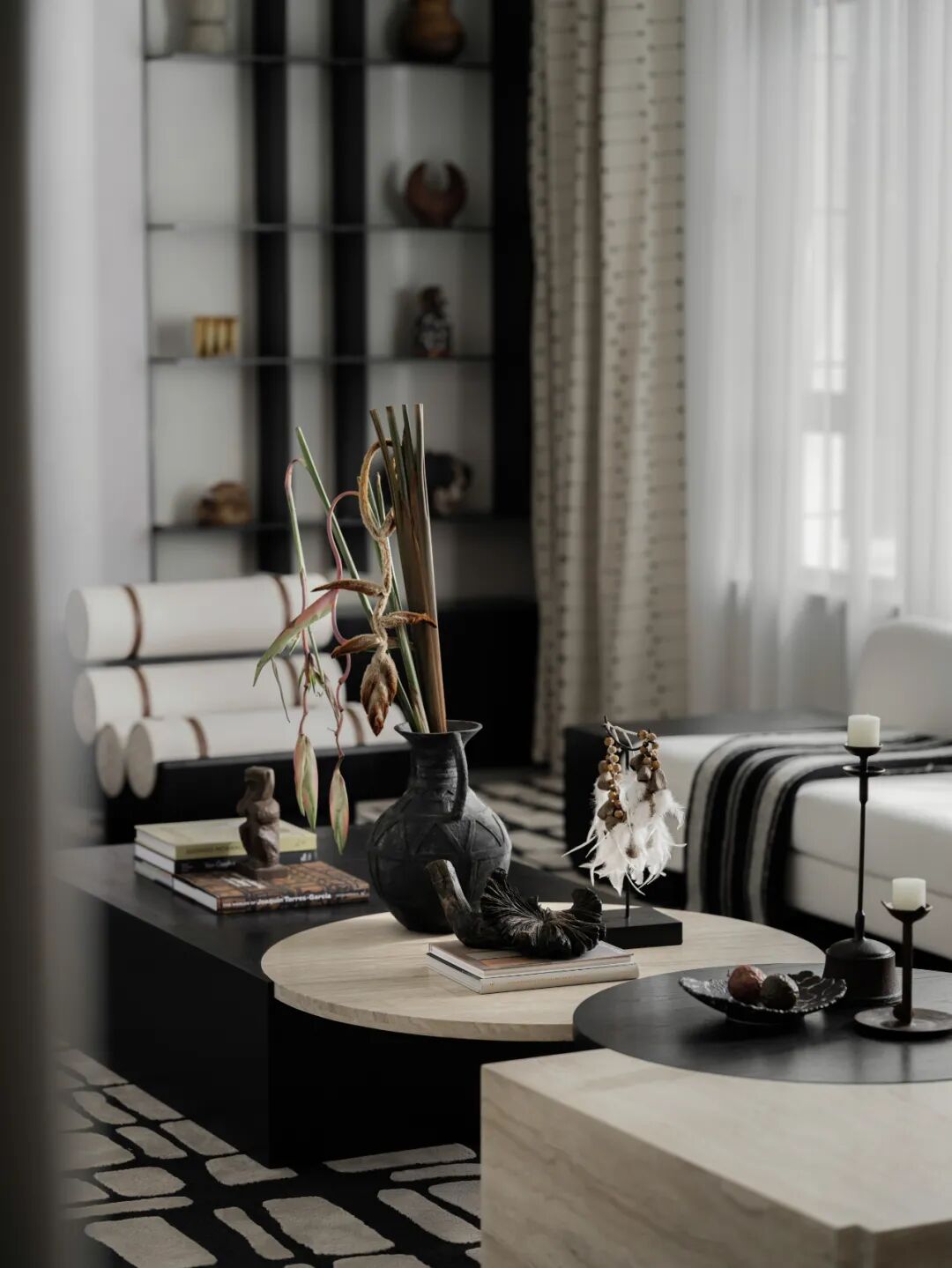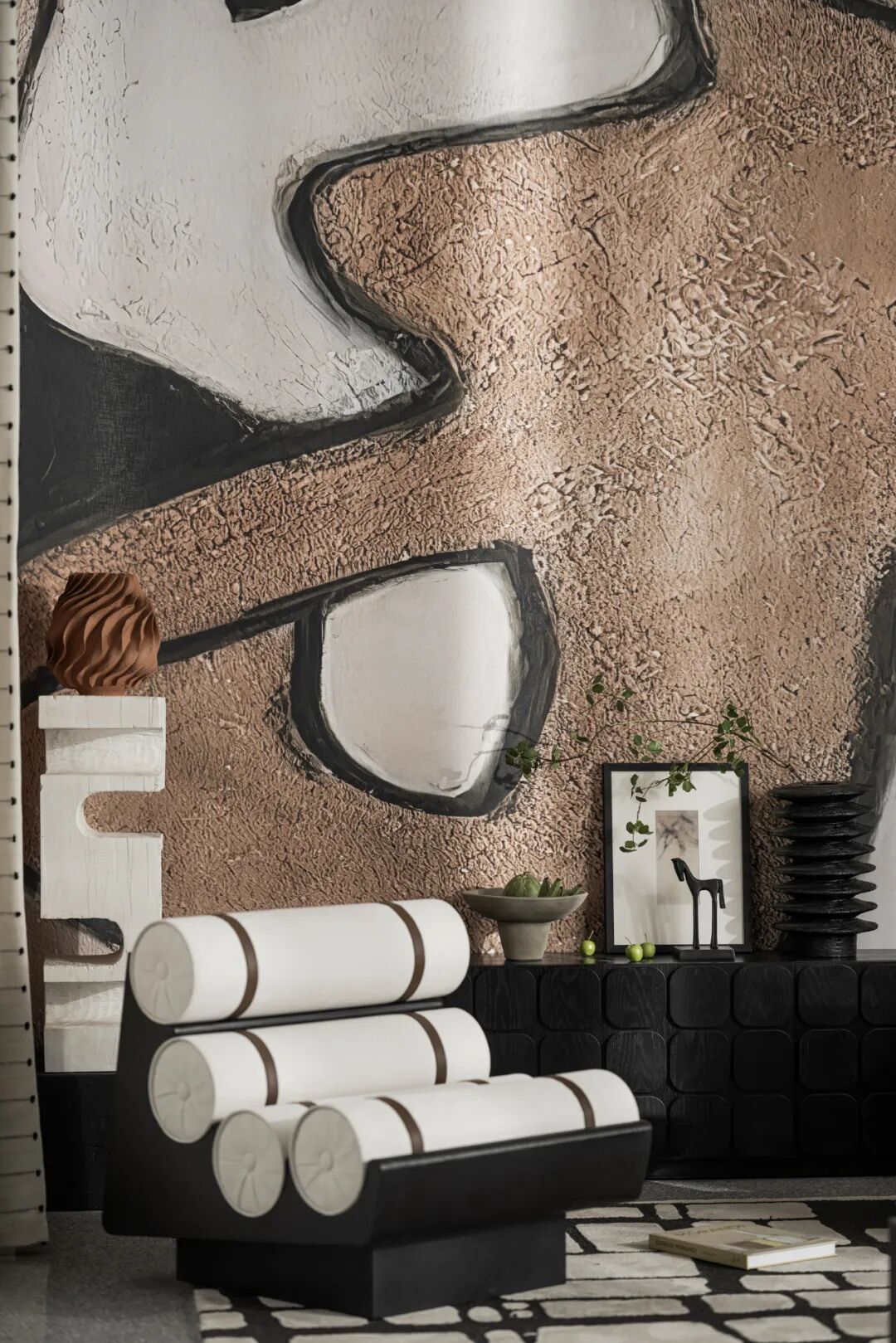 在客厅我们可观见不同材质间相互碰撞擦出的艺术火花,这不是单一的而是互生的沁润,通过能量振频发出的原生气息,细腻的引导我们本能地拥抱生活,营造洗尽铅华回归本质的温度。