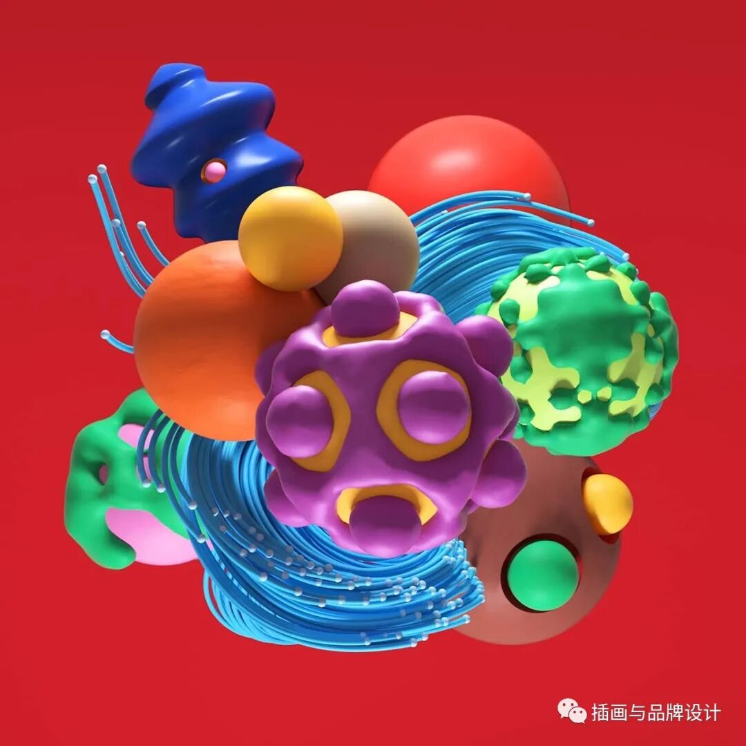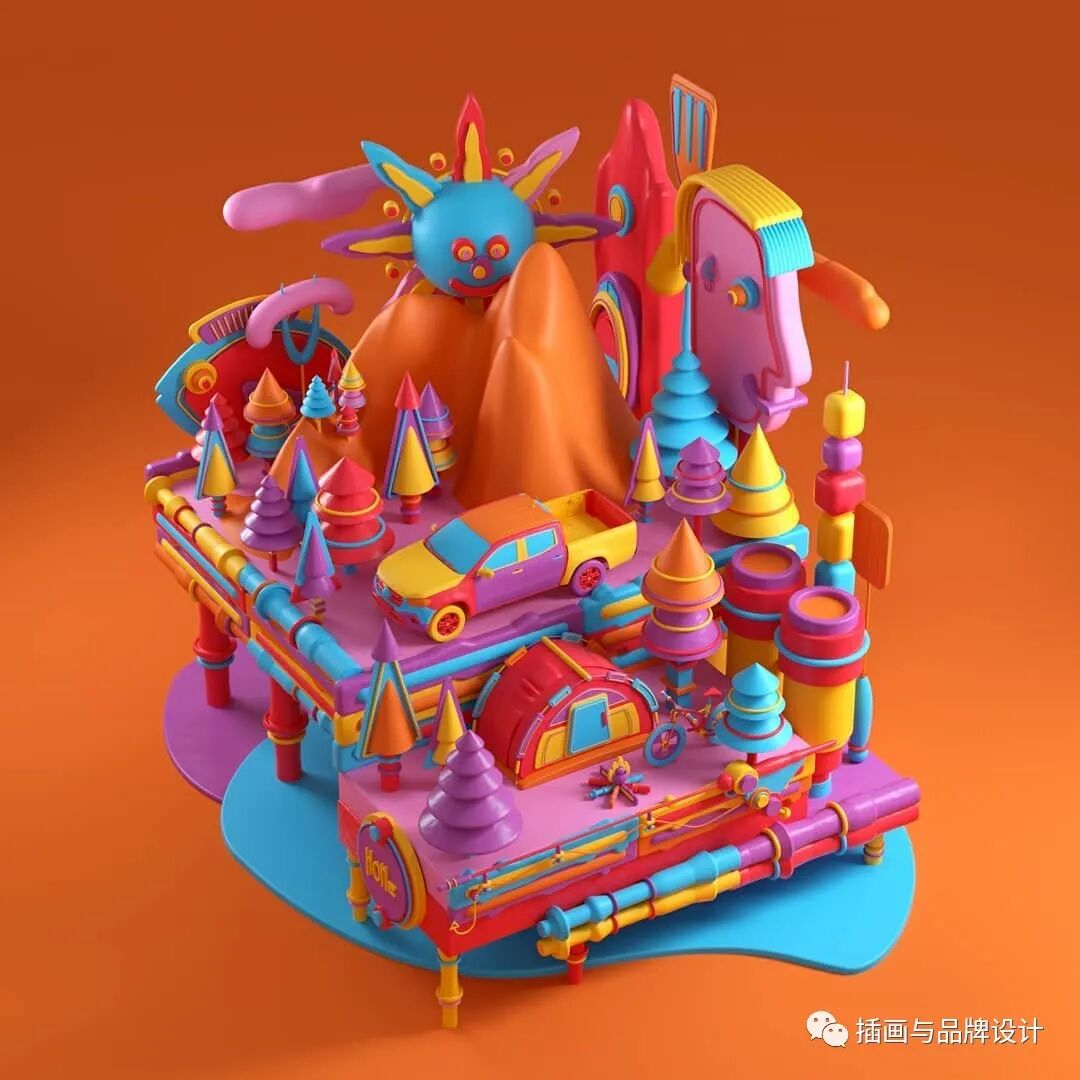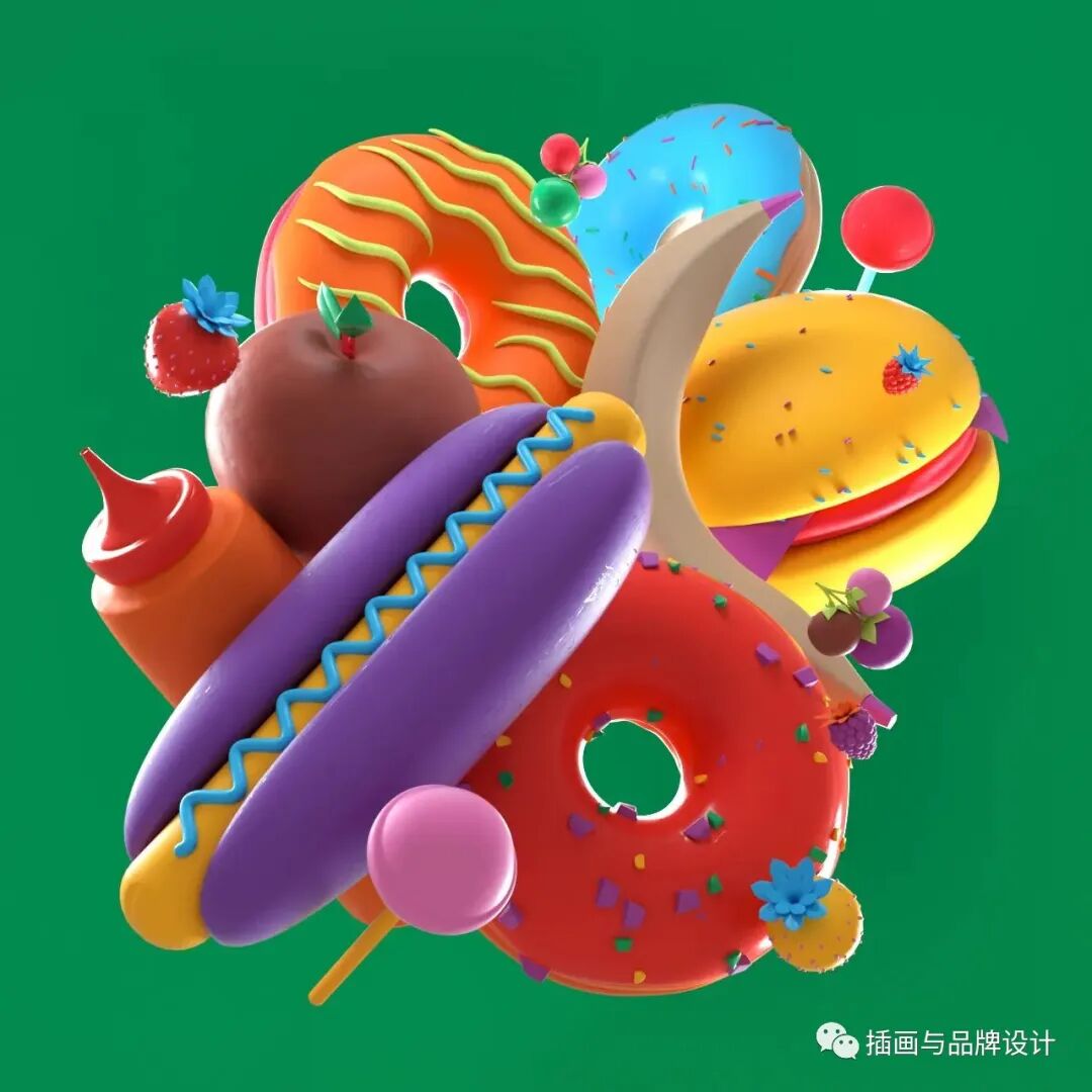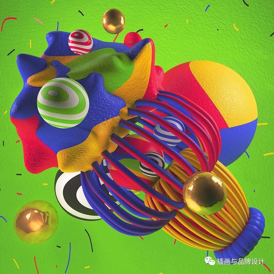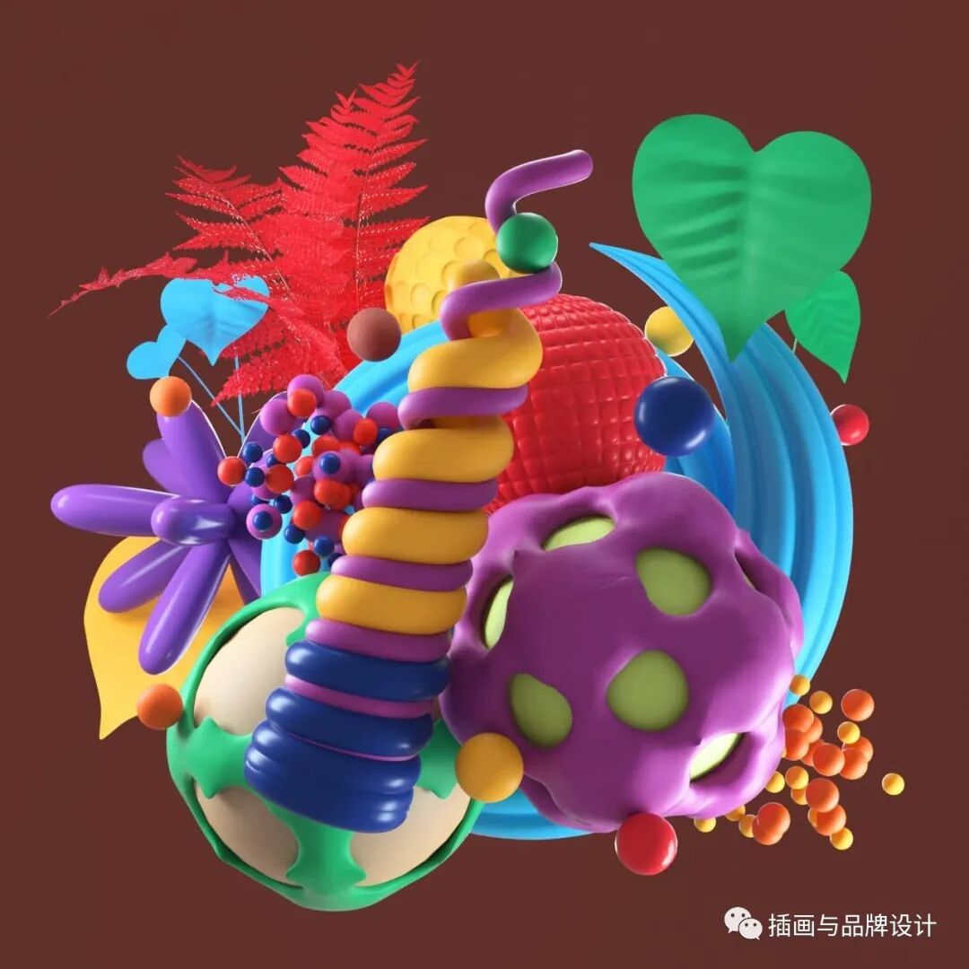 3D插画丨色彩缤纷的流行3D 插图,将排版和插图结合,画风充满活力