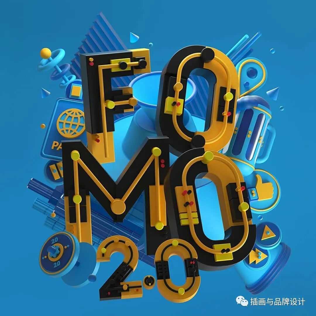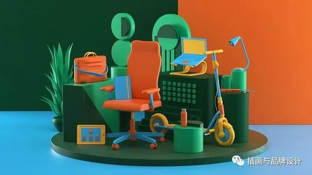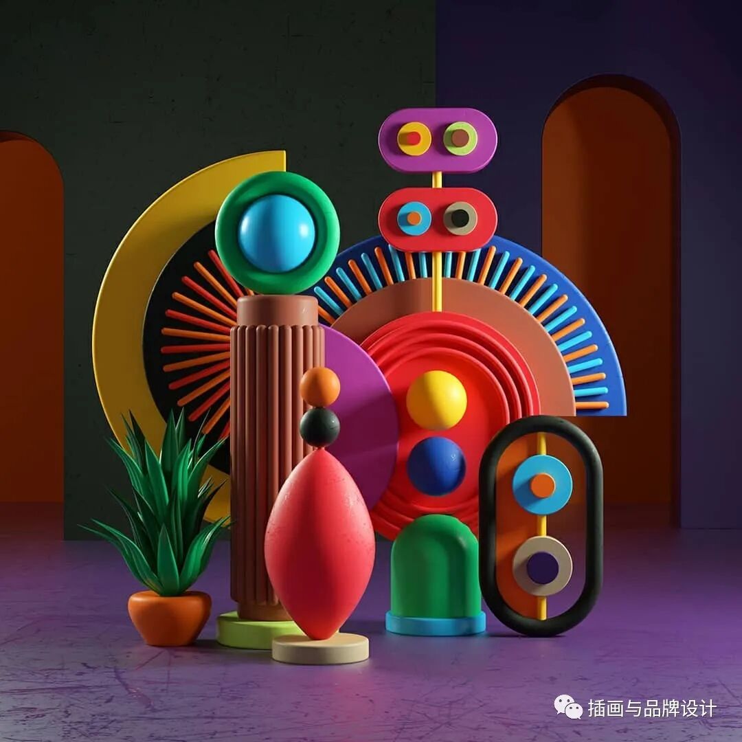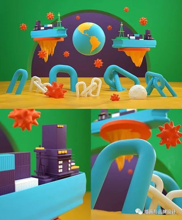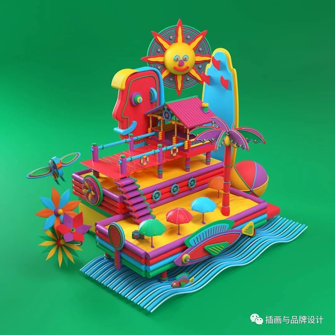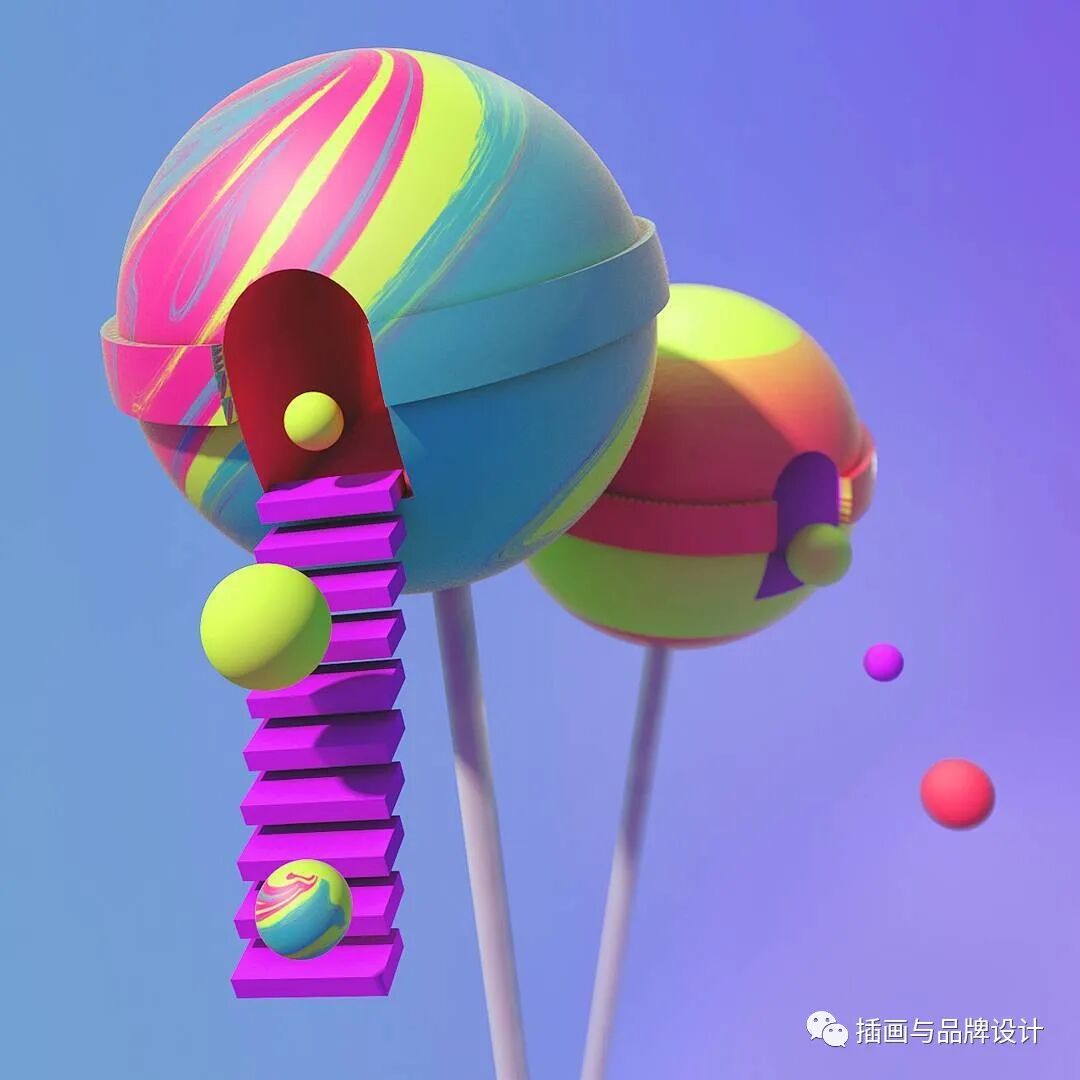 3D插画丨色彩缤纷的流行3D 插图,将排版和插图结合,画风充满活力