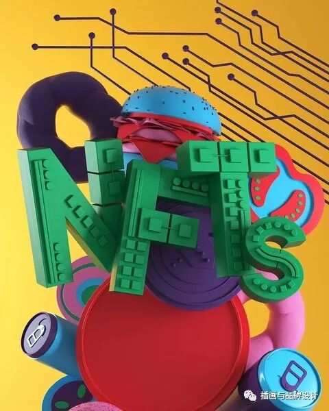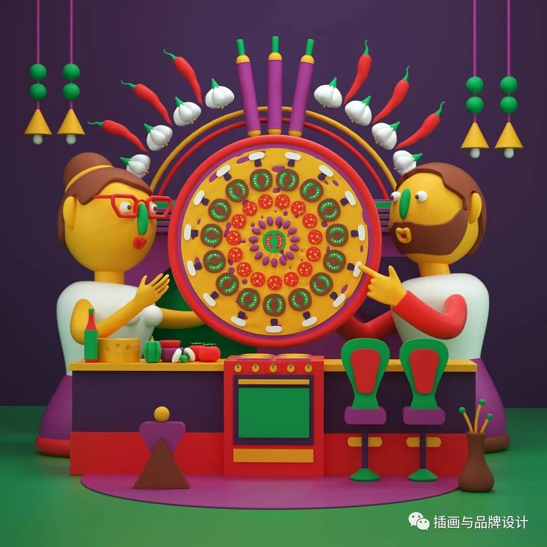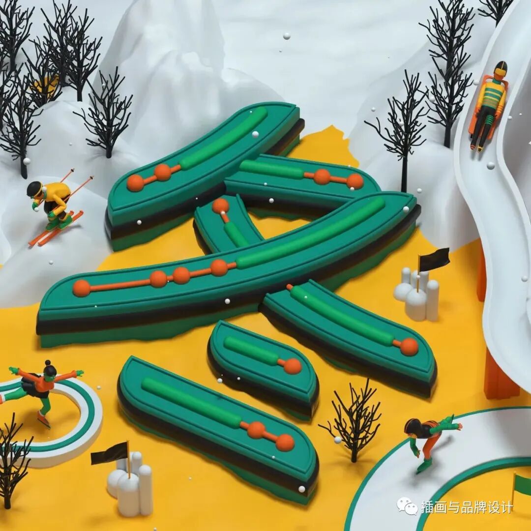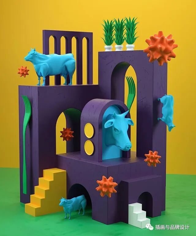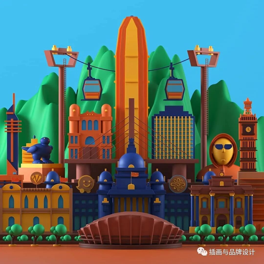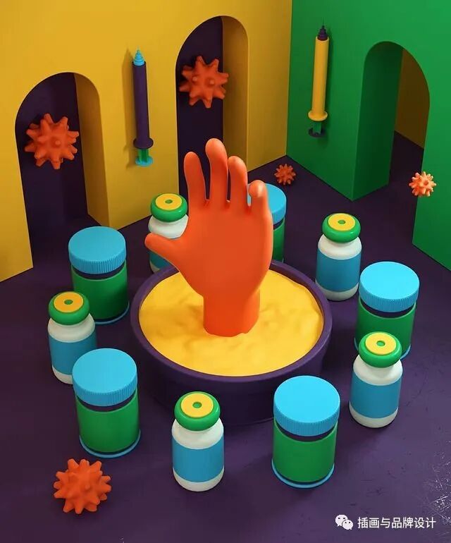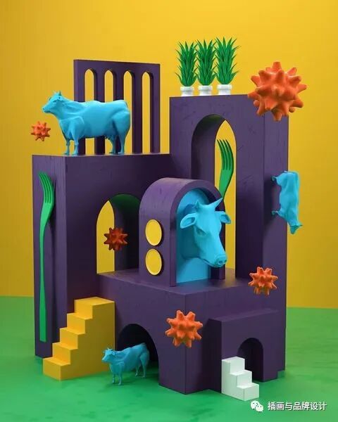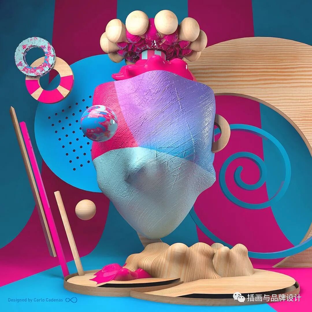3D插画丨色彩缤纷的流行3D 插图,将排版和插图结合,画风充满活力