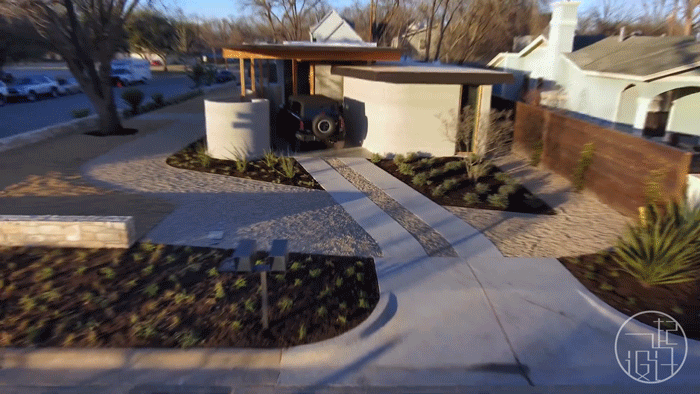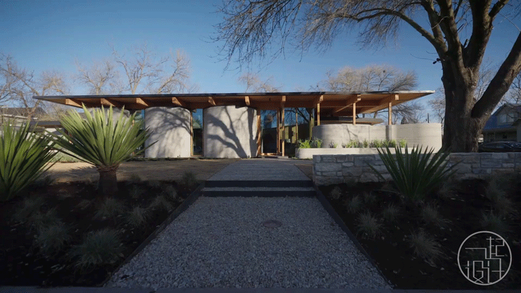 弧形墙面的玻璃拱门开口作为房屋主入口▽