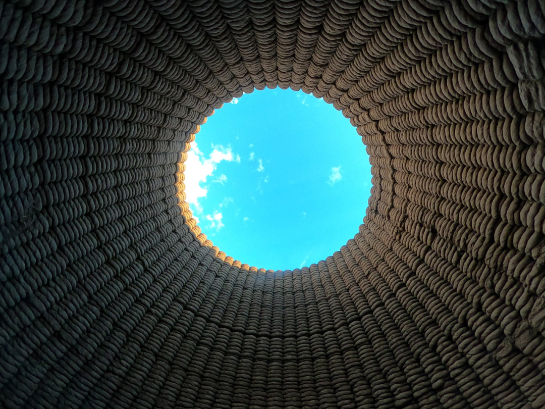 弧形墙面上的方型小窗户与外部环境保持联系▽
