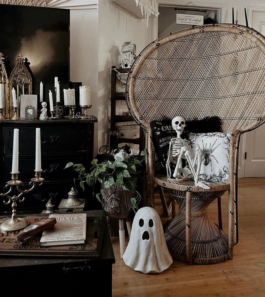 椅子旁边的幽灵摆件增添了应景的趣味性,是不是很可爱呢?