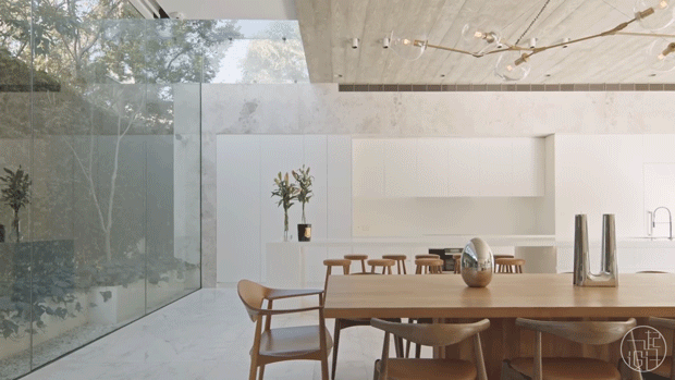 一层的全玻璃幕墙让住宅与其周围的自然环境融为一体,营造出一种在