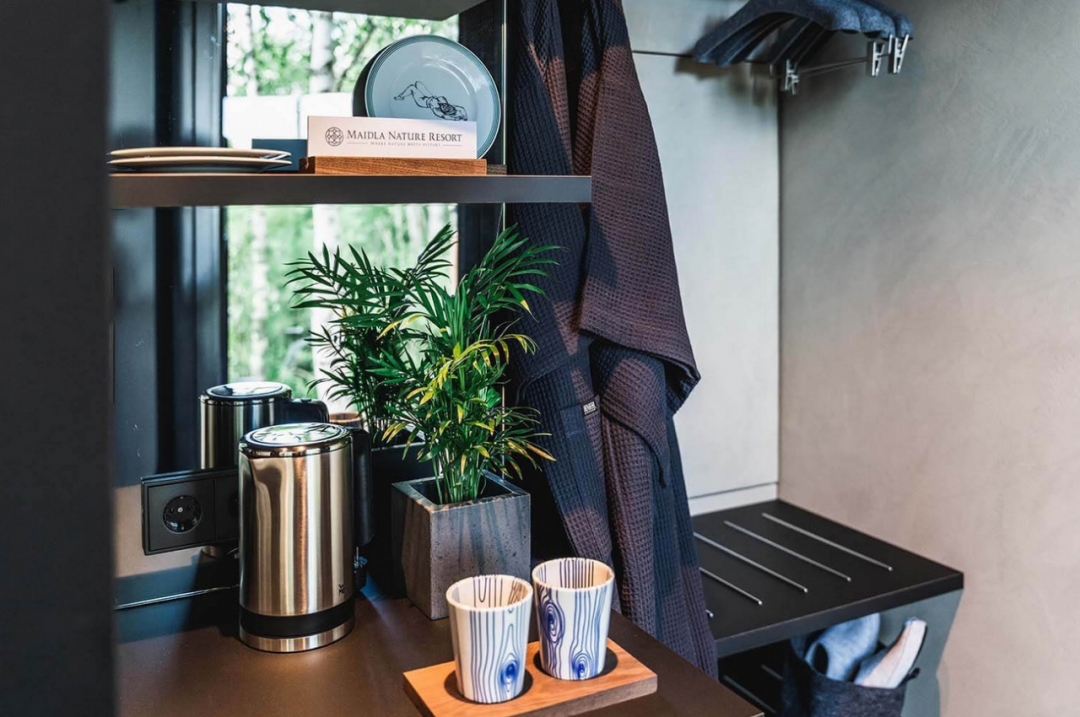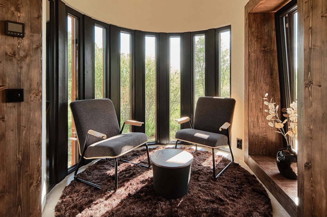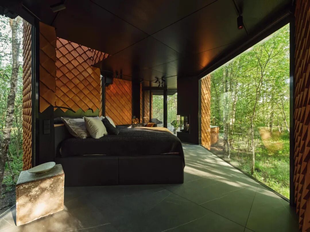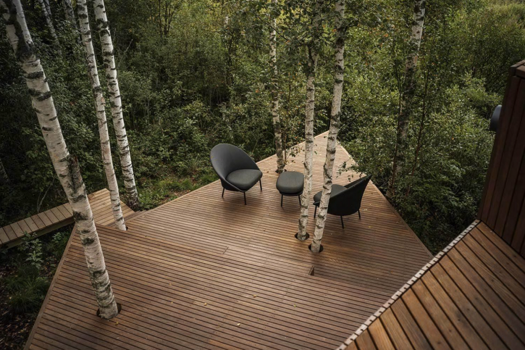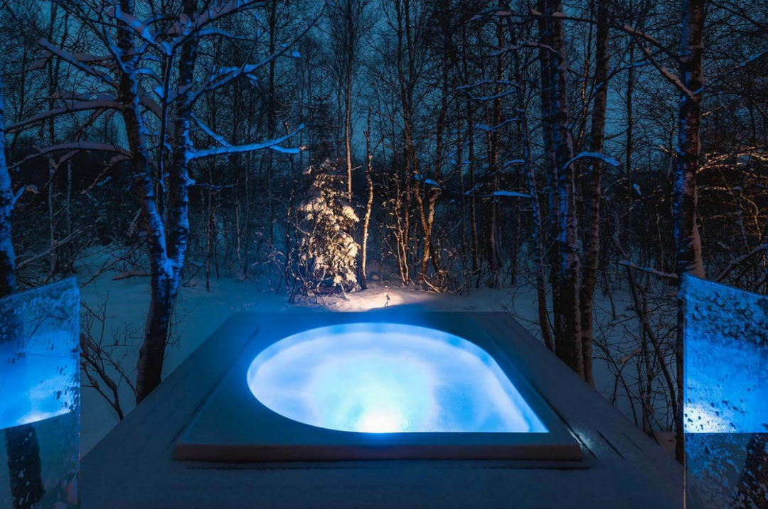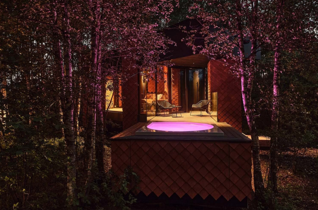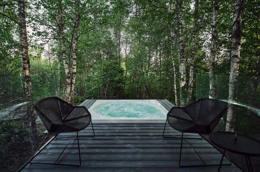 林中绝佳的隐秘氛围,自然可沉浸其中,体验一场放松的spa,体验真正地爱沙尼亚式度假之旅。夜幕露台的按摩浴缸随着灯光起舞,让人仿若置身在沼泽湖中游泳。