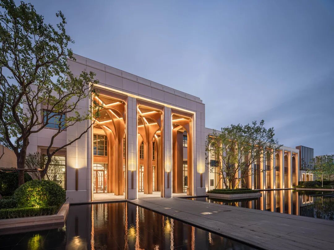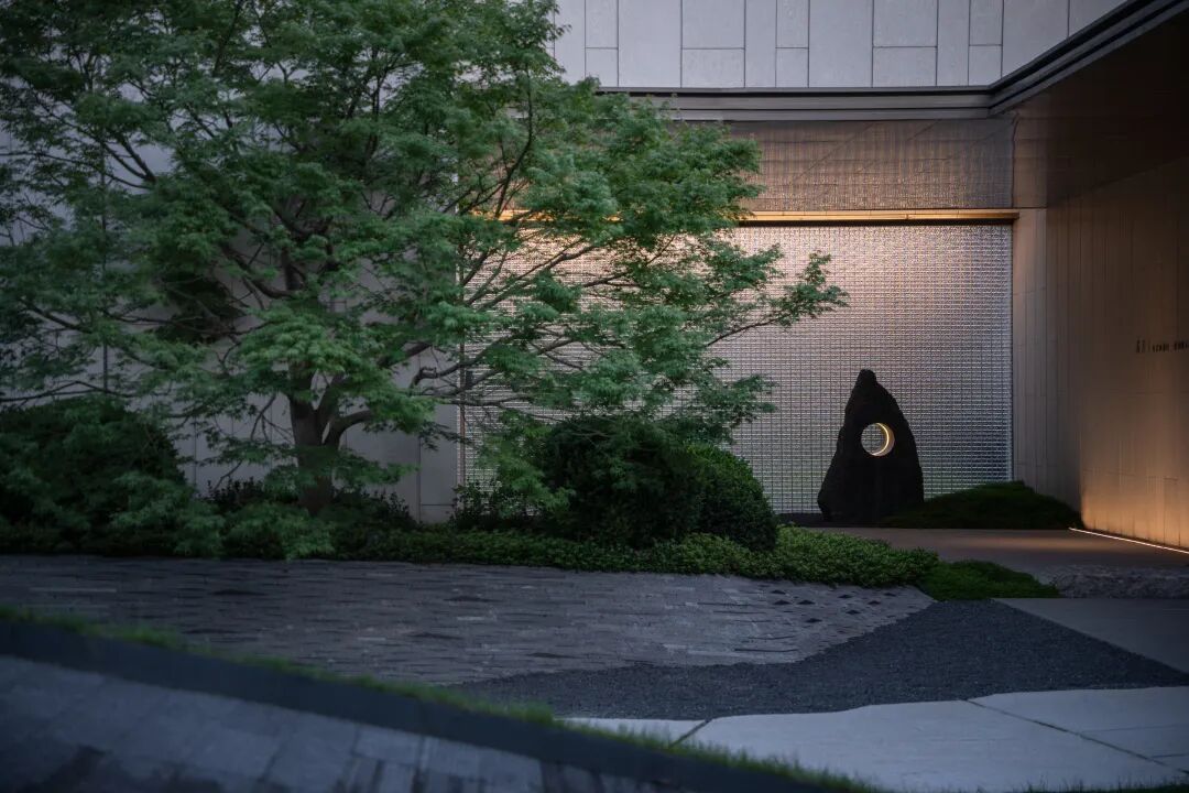 项目以月为形,以水为引,打造都市中的东方故礼。月的不同形态演绎空间的丰富性,水的多种变化渗透城市与自然的关系,形成月出、月盈、月林、云月、新月、月波、月满七种形态变化,营造一种精神故乡的场域概念。月光与水的洗礼孕育出“想得故园今月夜,晓月当帘挂玉弓”浓郁的故礼情。景观提取传统造园手法,空间采用三进五景的手法,用现代语言去传承东方质朴隐雅的价值本源,融合了东方归家、观景、品味的要求。