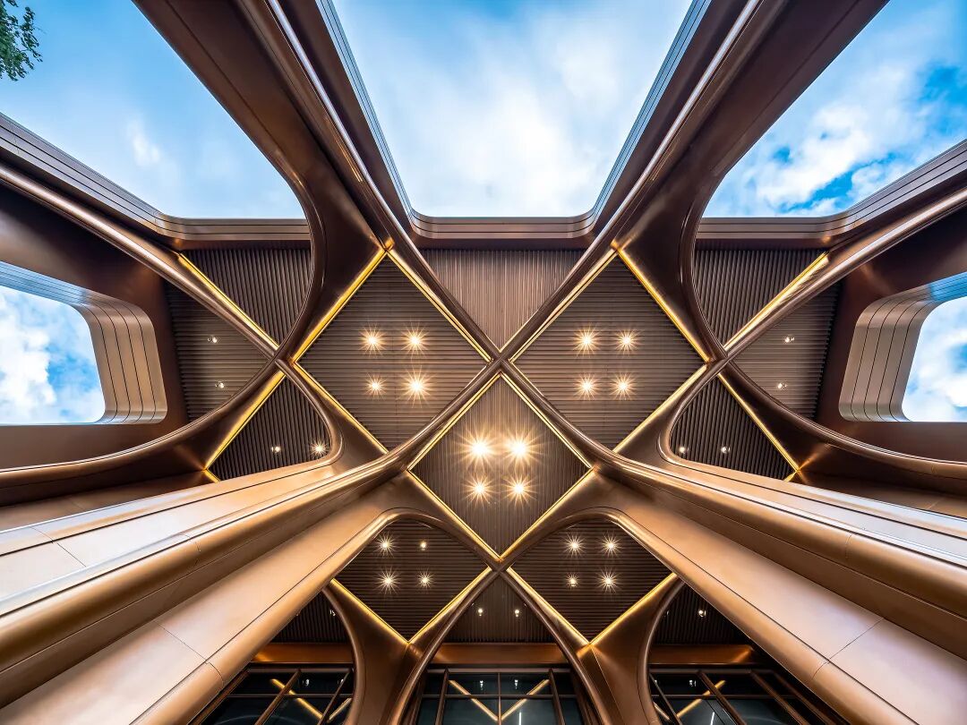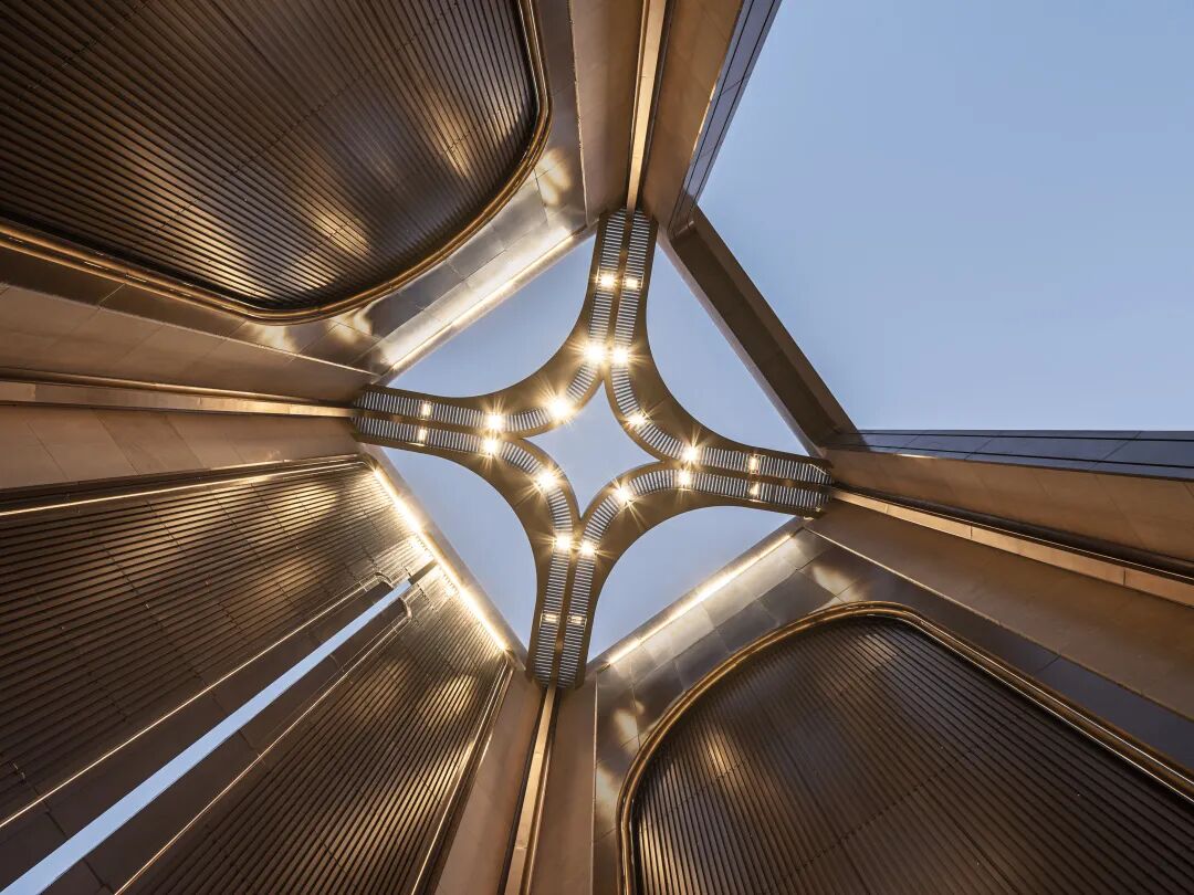 建筑师提取“名仕、向上、光影、未来”四个关键词作为建筑主题,并结合海上灯塔,西方哥特式拱券等元素,融入方案设计之中,打造一段精致典雅的艺术光影之旅。通过对场地流线的塑造,展示区游览的过程被打造成一系列空间序列的展示。景观设计契合主题,以光影变化串联整个空间动线,打造一场溯光寻影之旅。