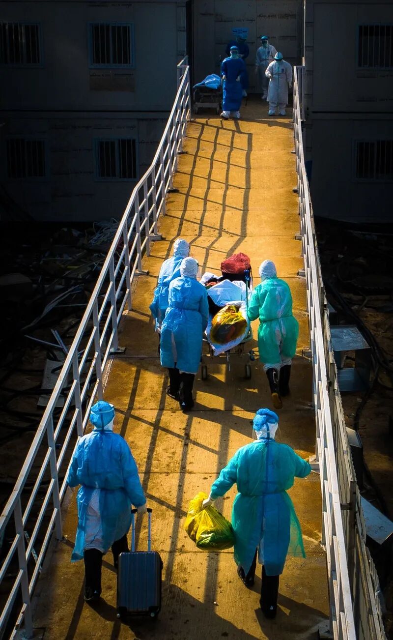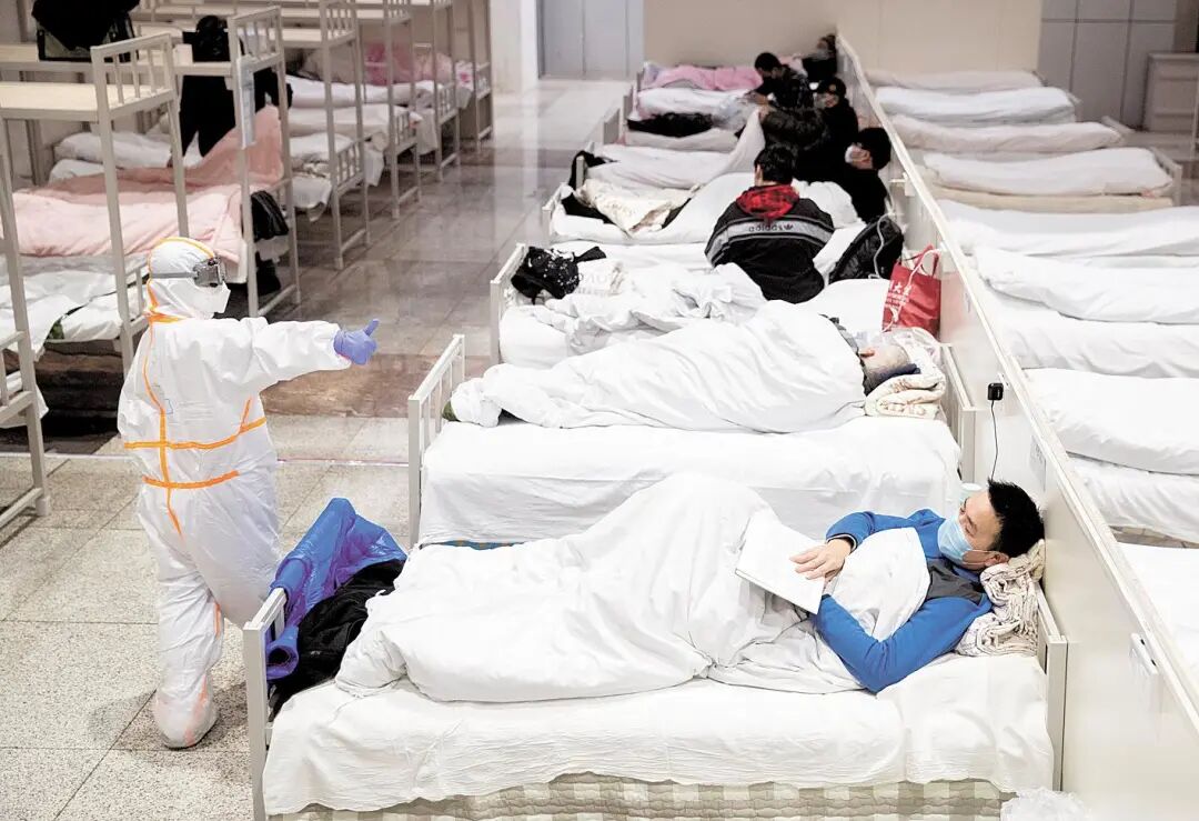 在“应收尽收,不漏一人”的要求下,武汉市除了搭建火神山和雷神山之外,更将多个公共建筑设施被改造成方舱医院,用于接收新冠肺炎轻症患者。共 16 家方舱医院收治了超过 1.2 万名患者,有效的减少社区内交叉感染。病患在方舱医院内做呼吸操,看书、办公、学习,正在阅读《政治秩序的起源》的付先生,被拍下后一度在社交媒体上引起热议。
