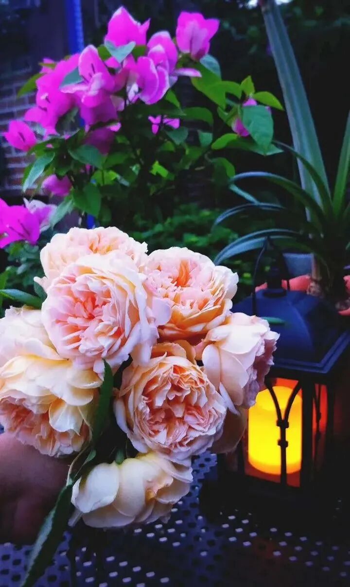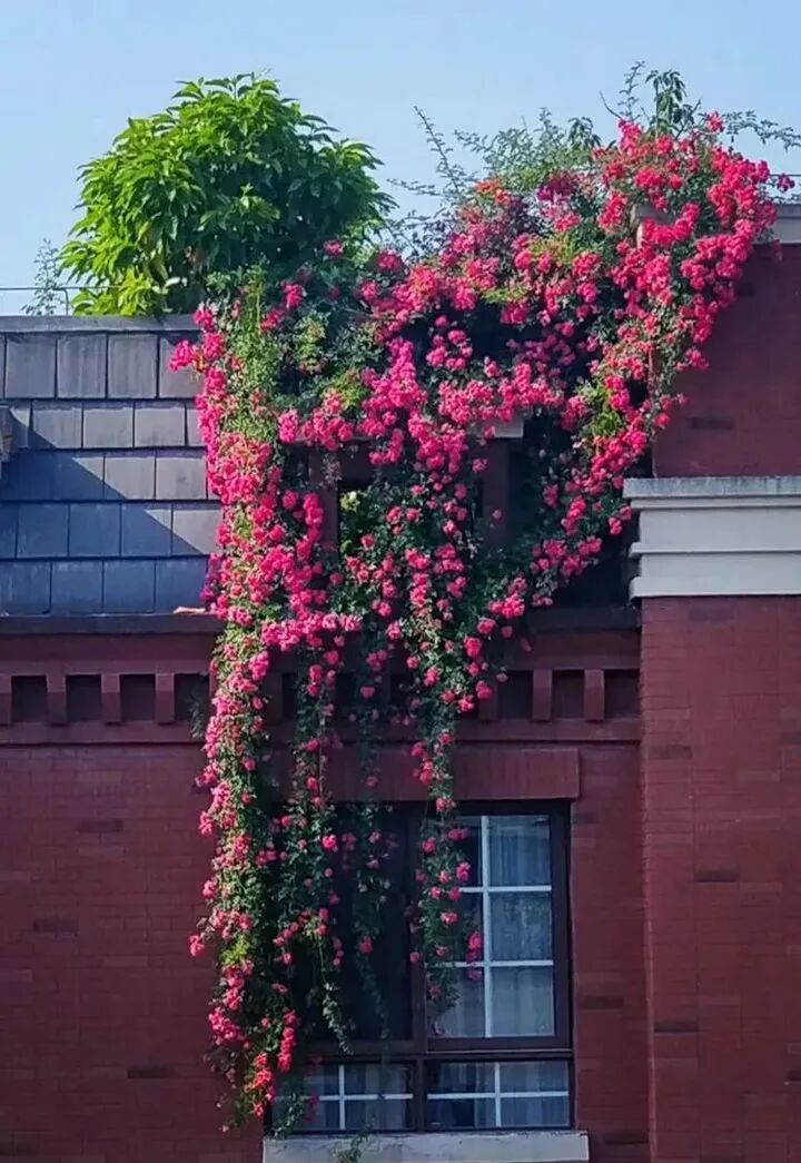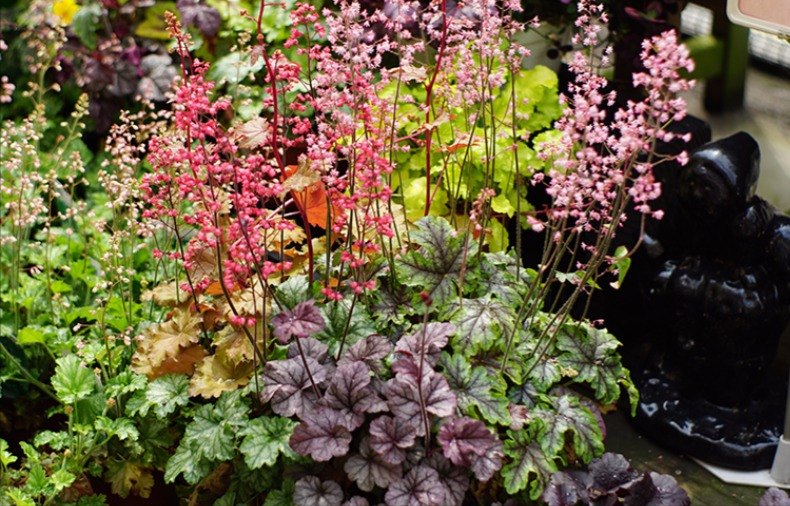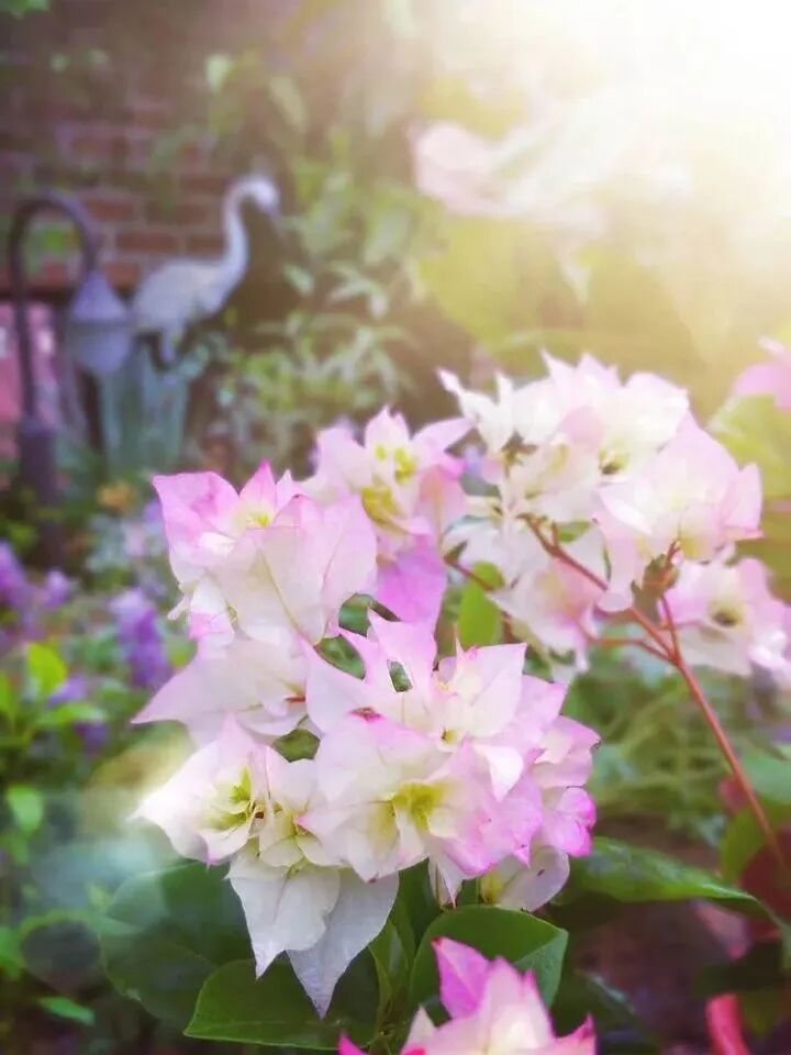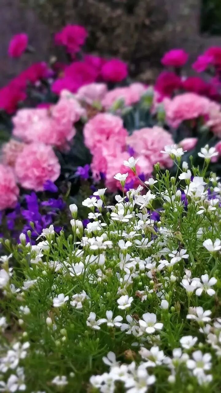 以绣球花为中景,以月季藤蔓作为远景植物,