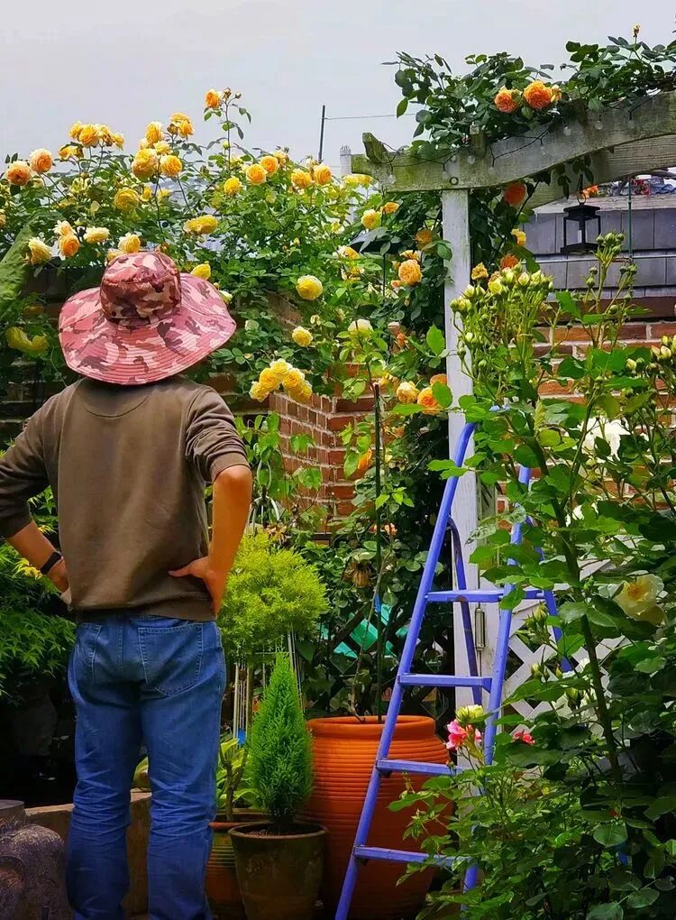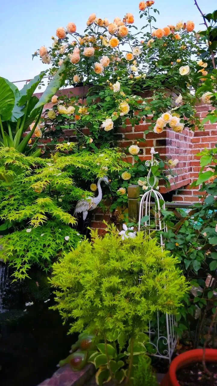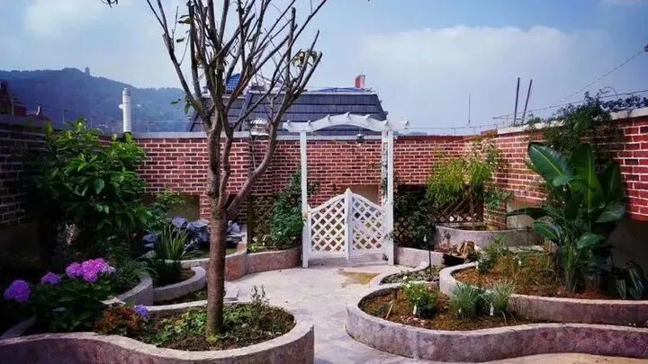 花池用拱门隔开,将菜地与花草区隔开,自然遮蔽;