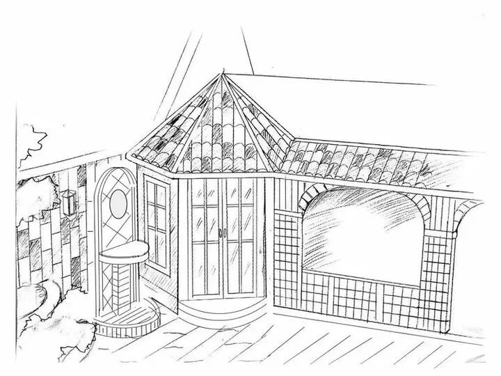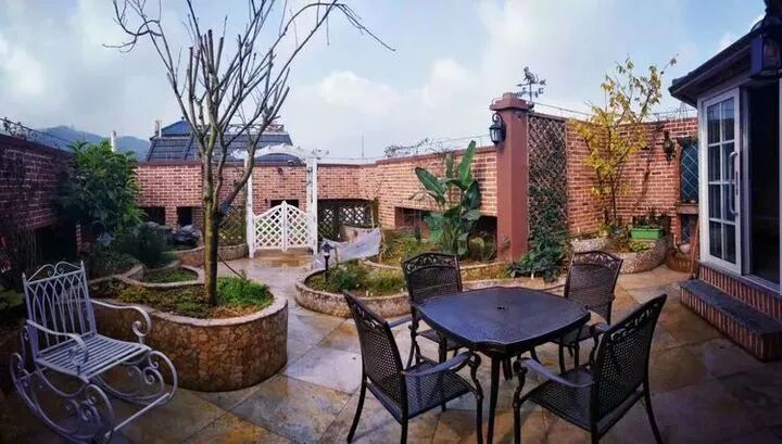 60多平米的小花园,辅以立式消火栓和瓦顶屋,
