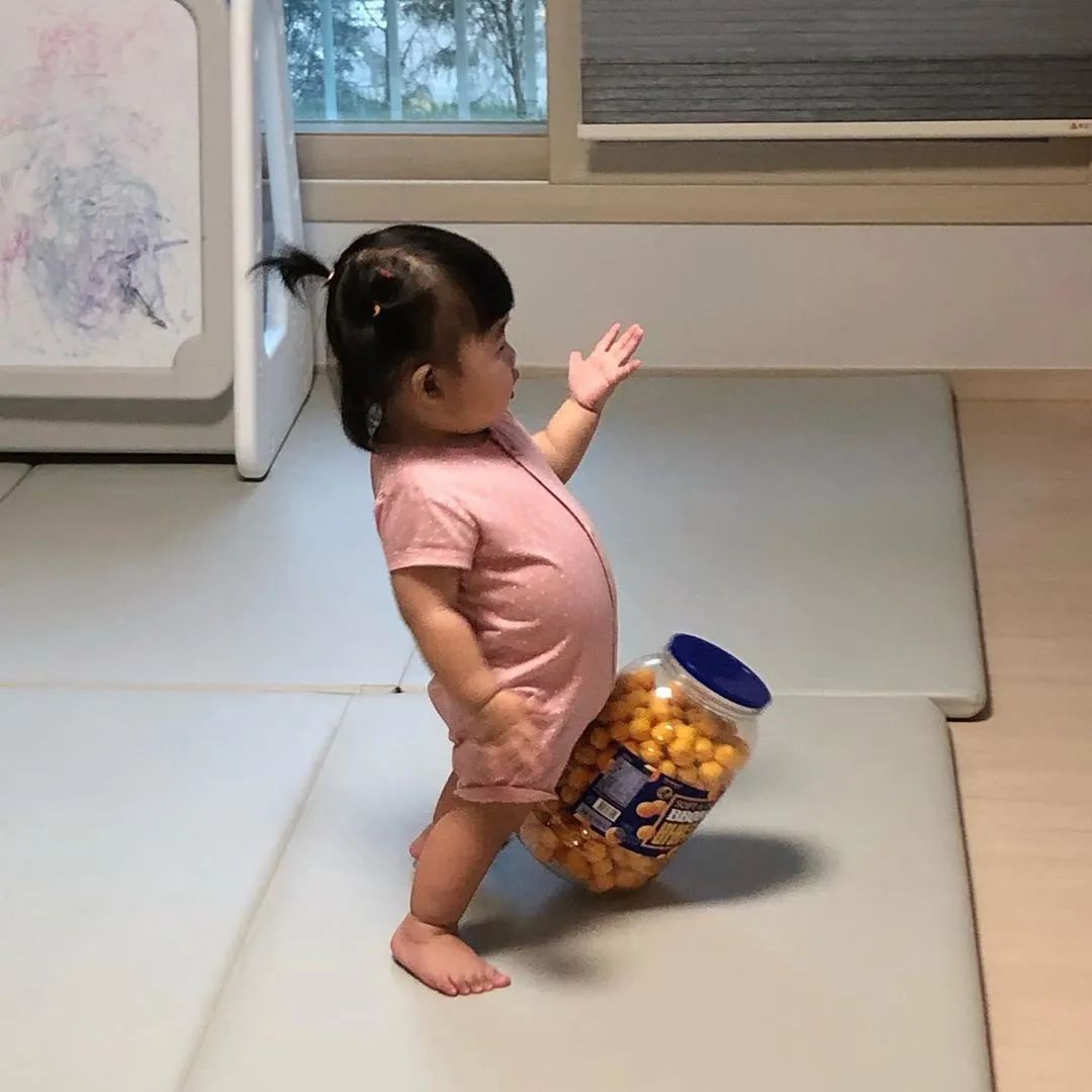 生活中妹妹还是个贪玩调皮的小朋友,比如常会做一些让爸妈哭笑不得的举动,表情包get: