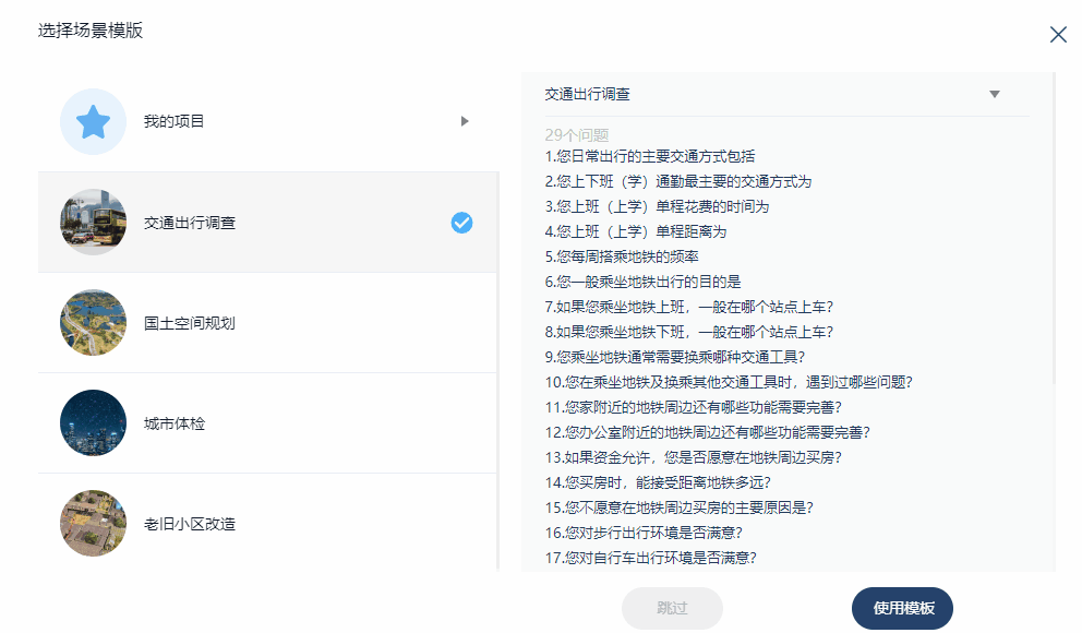 录城PinSurvey已服务于百余座城市,从城市体检、街区品质提升、社区生活圈、建筑风貌,为上千位规划师建筑师提供现场调研工具支撑,积累了多种项目场景模版,涵盖了90%调研要素内容
