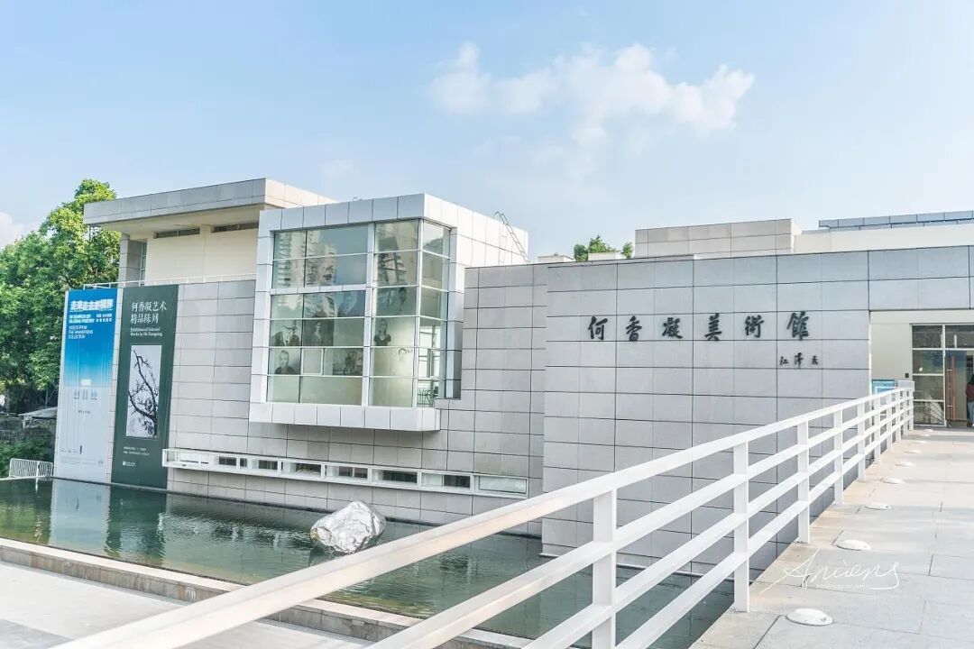 何香凝美术馆就在热闹喧嚣的深南大道边上,隐匿于红花绿树之中,灰、白两种色调的主体建筑,像极了某位名人的故居,幽静典雅又朴素庄重,浓郁的传统文化氛围中体现着现代感,更体现着何香凝先生一生的品格。