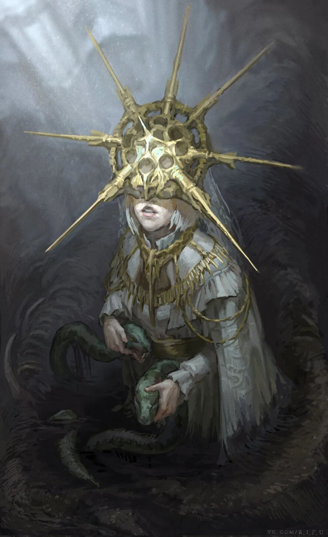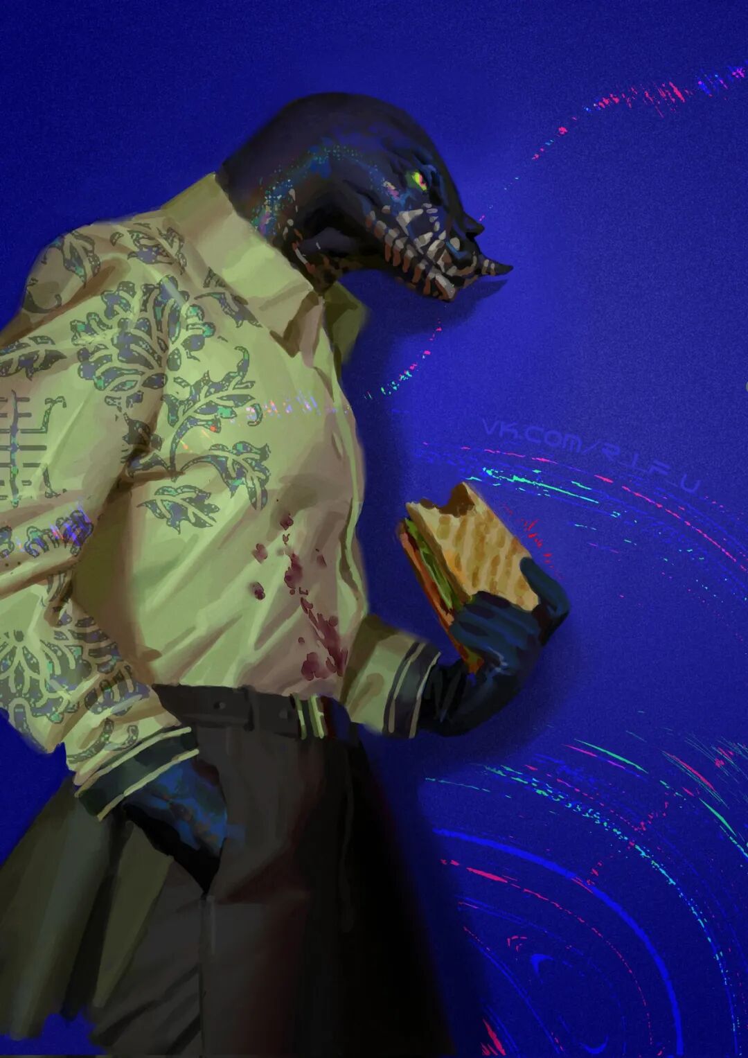 今年刚满23岁的俄罗斯女画家,目前还在上学中。在一种画师中,以独特硬核毛子审美,在短短一个月凭封面3张图推特涨粉1w+,其作品有种超现实主义的意味、梦幻、科技、真实、生命力汇聚于作品之中,呈现出独特的视觉设计,多适用于西方电影特效、造型制作等方面。她也是一位角色设计师,其角色创作对象多聚焦于兽首人身,或是异形等,整体呈现出和谐梦幻之美。习惯于用sai2绘出立体质感,其笔触清晰可见,可见其基础功底有多扎实。