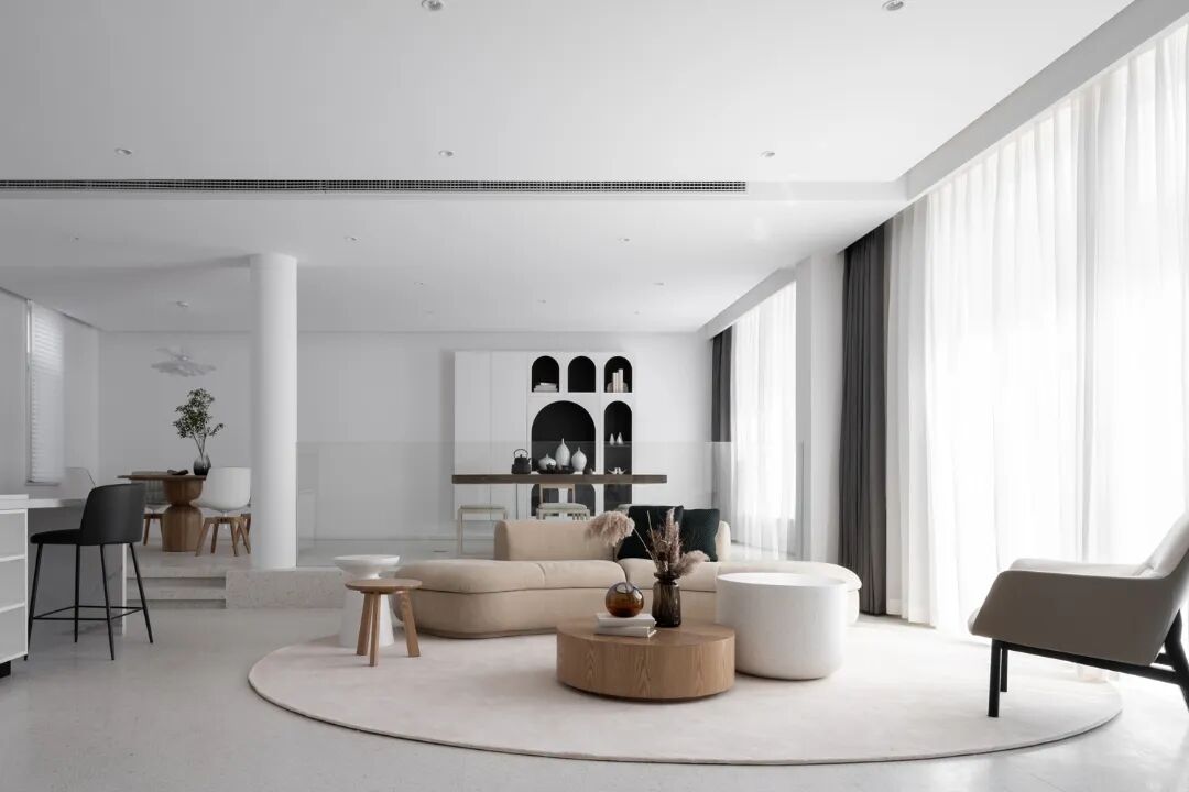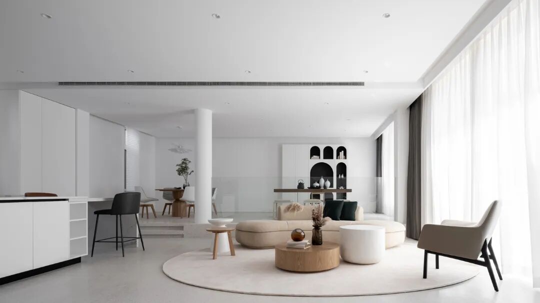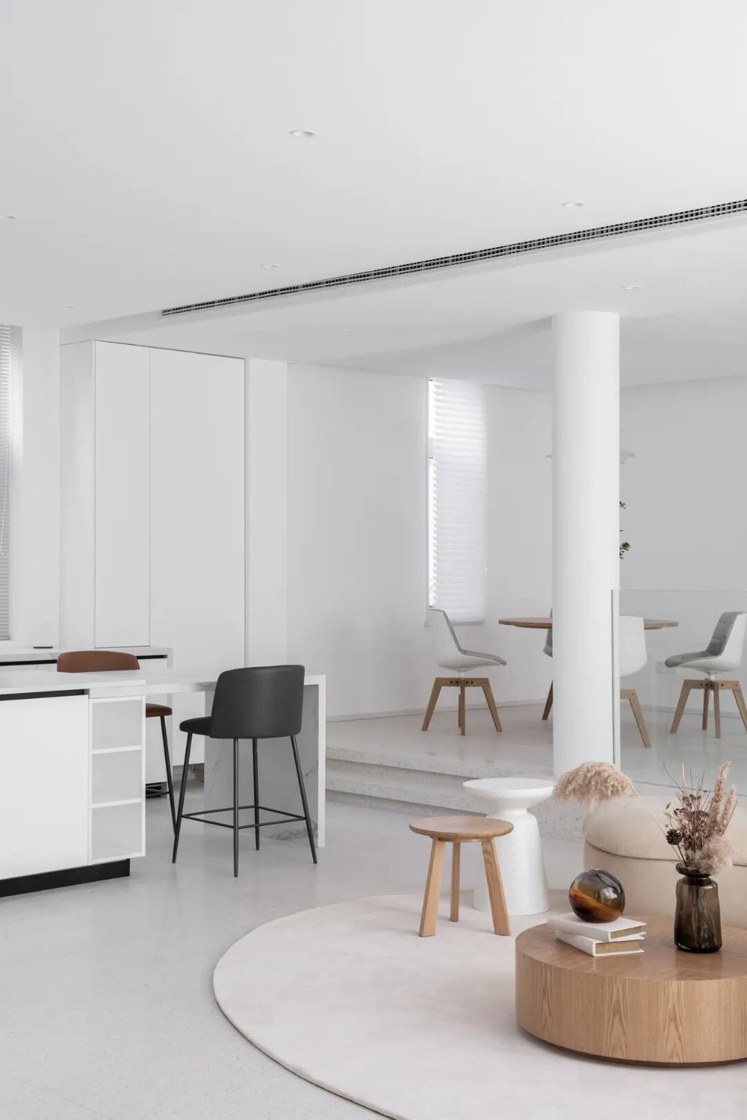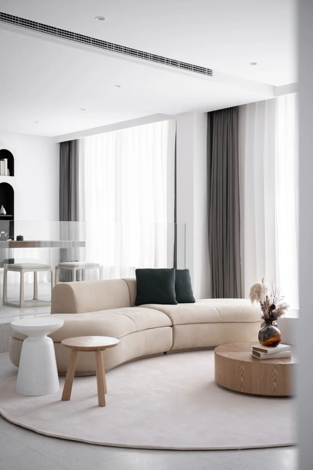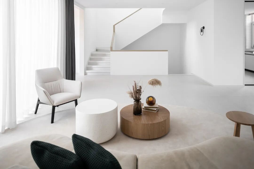 本案是一个400㎡的联排别墅,屋主喜欢极简的生活方式,但又不希望家过于清冷,于是用了原木和暖色调的家具点缀其中,打造了一个"温暖"的极简风居所。