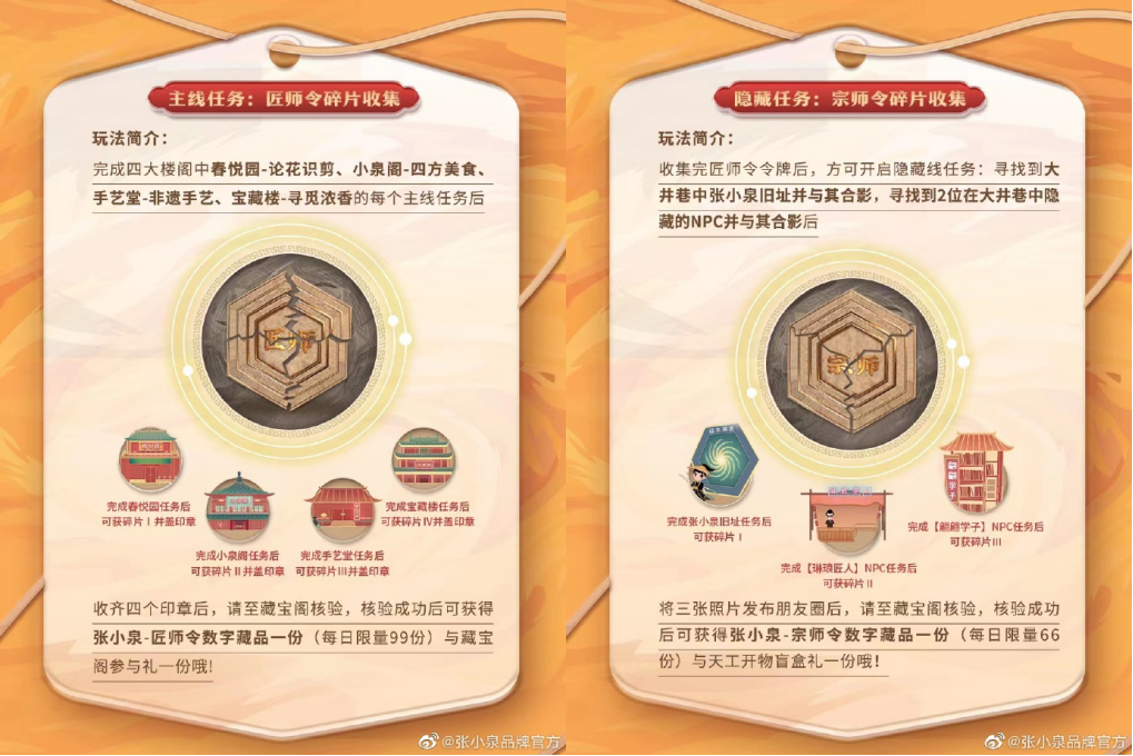 在游戏关卡设计上,张小泉花了不少心思。每道关卡的所在地布置都是巧妙结合了古建筑神韵与现代元素很有新意,而且游戏玩法不仅有趣而且与张小泉的产品强关联,如找出“伪装”的张小泉园林剪刀并拍照的“论花识剪”,说出除张小泉外你所知道的“非遗手艺”,以及见识出神入化刀技切出的“四方美食”等,不仅让参与者乐在其中,也让参与者加深了对张小泉系列产品的认知。