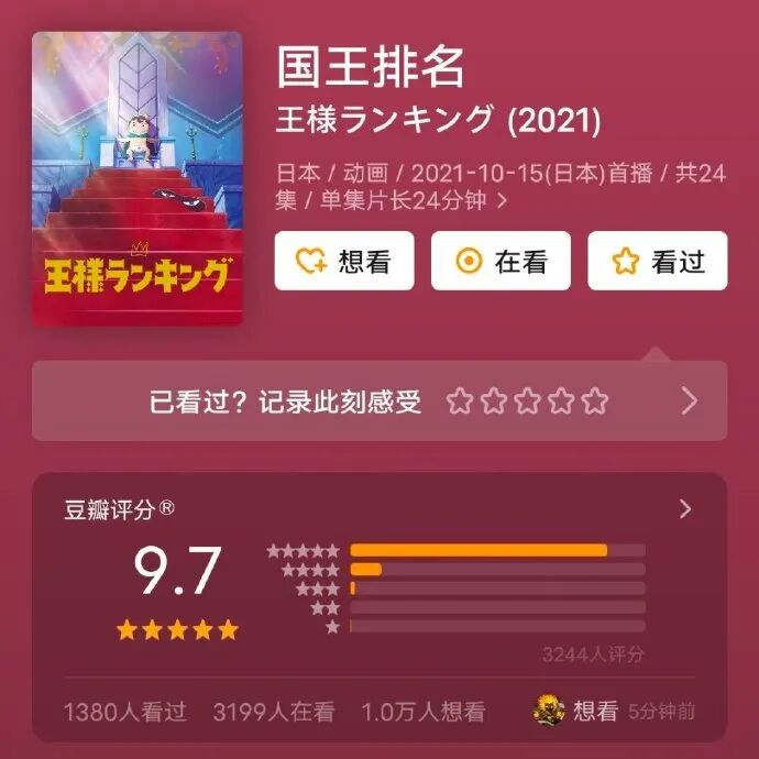 例如前天本花才写过,播出三集,就9.7分的《国王排名》。