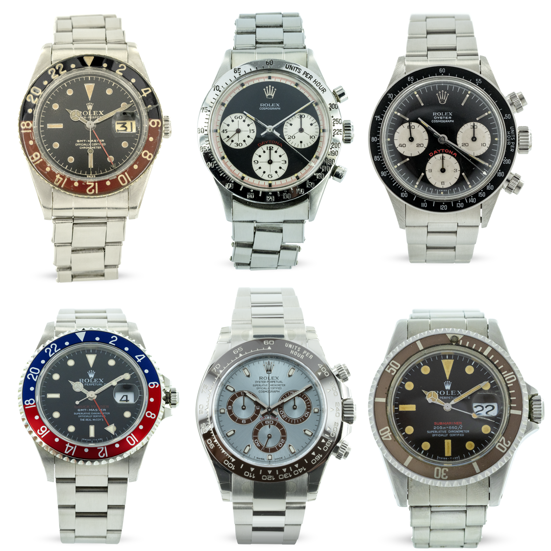 劳力士是 OAK 系列中的第二大品牌,Getreide 收藏的劳力士以运动表为主,有保罗纽曼面古董迪通拿,有史上第一块量产铂金冰蓝迪,还有古董“百事圈”“可乐圈”“水鬼”,等等。