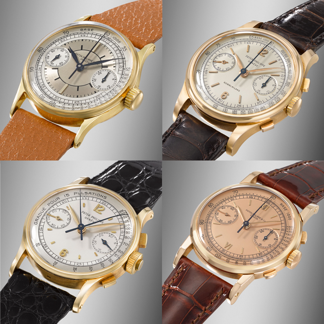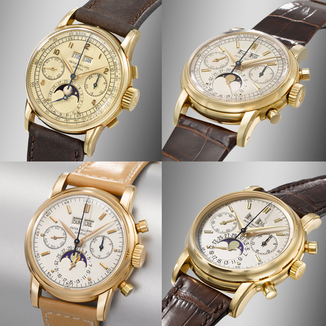 比如一整套四款型号2499计时万年历,一枚蓝色珐琅表盘的型号2523