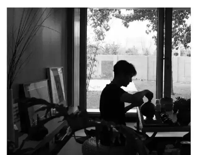 他最常坐在两条走廊交接处的开放式茶室中煮水烹茶,