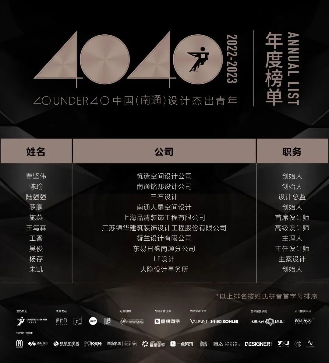 祝贺以上获得40 UNDER 40中国(城市)设计杰出青年(2022—2023)的青年之光!同时,进入城市榜单的设计杰出青年将获得角逐省区榜单的机会。