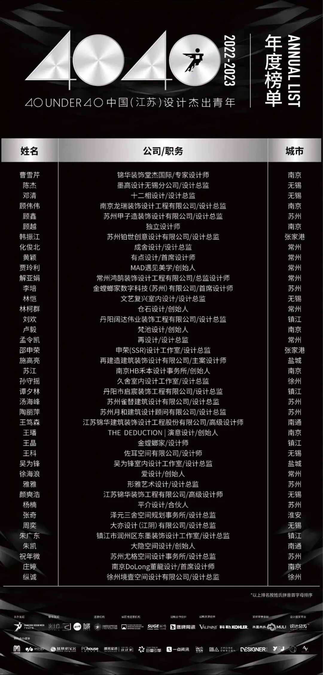 祝贺以上获得40 UNDER 40中国(江苏)设计杰出青年(2022—2023)的青年之光!至此省区榜名单已公布完毕,所有进入省区榜单的设计杰出青年将获得角逐全国榜单的机会。