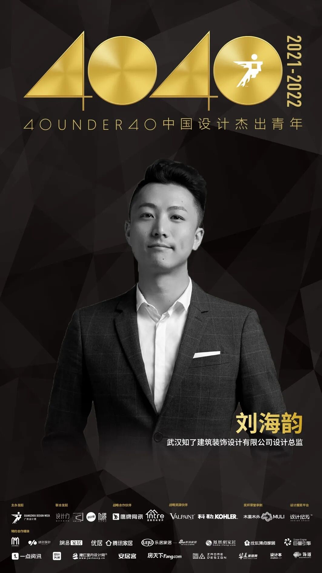 “40 UNDER 40 中国设计杰出青年”年度榜单由广州设计周在IFI认证、全球同步推广的专业背景下于2016年发起,每年度通过举办“城市榜、省区榜、全国榜”等核心内容,发布并表彰城市/省区/全国不超过40位40岁(含)以下在室内设计、建筑设计、园林景观设计及关联领域具有卓越表现和专业成就的青年设计师,旨在推动中国设计中坚力量合力成长,彰显中国设计精彩纷呈的征途篇章。
