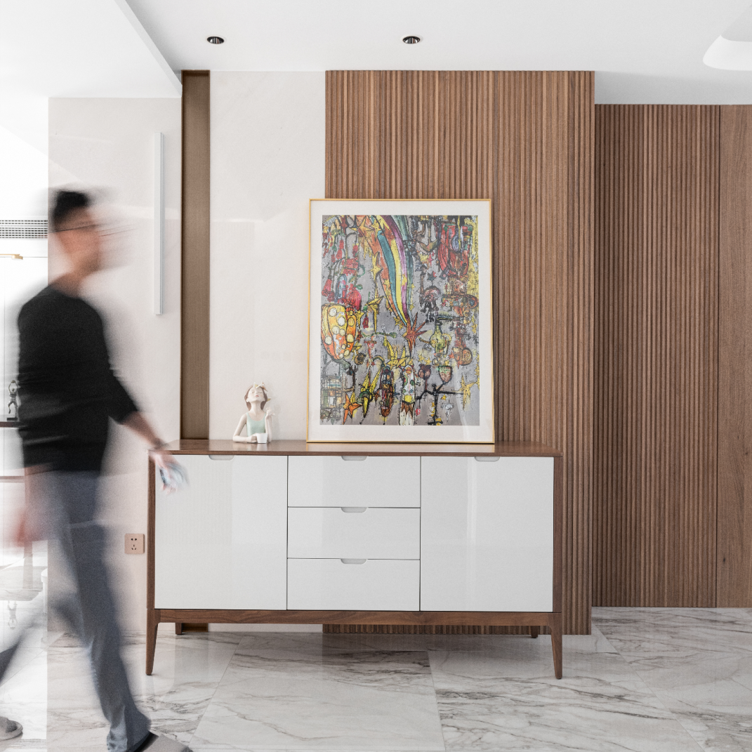 要说设计初衷,其实都是大学设计专业的产物。我是在从业5年以后,逐渐对设计有了些不一样的认识。对于家居设计,我始终坚持“以人为本”。在结束高压工作状态后,每个人都期待回到一个舒适、放松、毫无违和感的家,这个家能融入业主的个性和生活习惯。作为设计师,我们通过设计的手段让各类材料用的恰到好处,包容业主的兴趣喜好,外化业主的品位格调,同时兼容好看和好用,进而相得益彰。