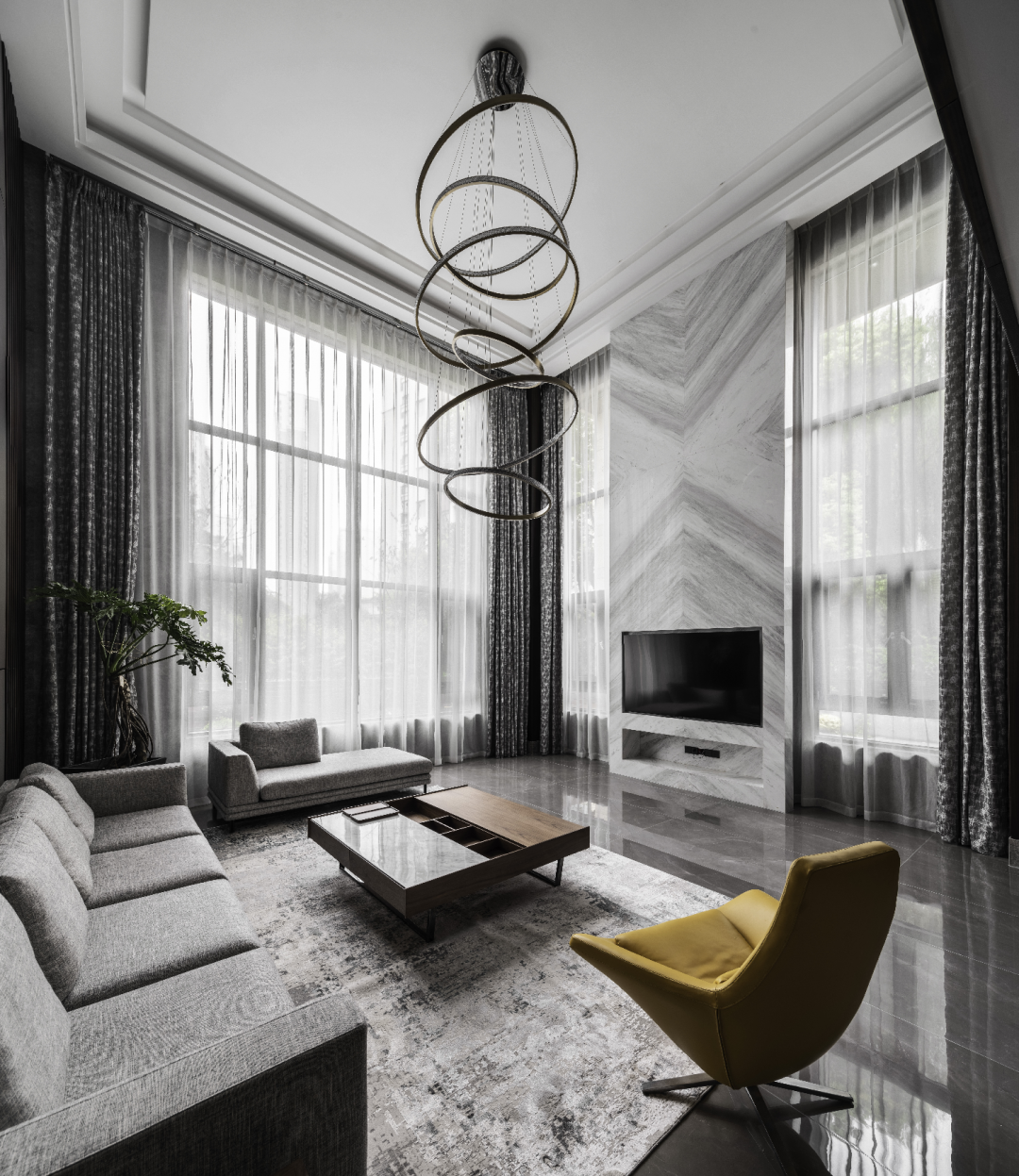 以流丽灵动与灿斓多情的艺术灯饰作为视觉焦点,光线的影调,赋予空间生动轻灵的魅力。
