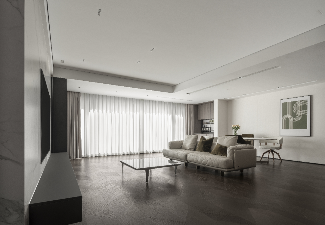 空间动线的合理便利化以及舒适度,是本案设计的首要考量因素,通过细枝末节的体贴与独具特色的个性家具,让居者在本真敞阔的空间中感受生活的的节奏韵律,领略精神生活的内核与绵长深刻的爱意。